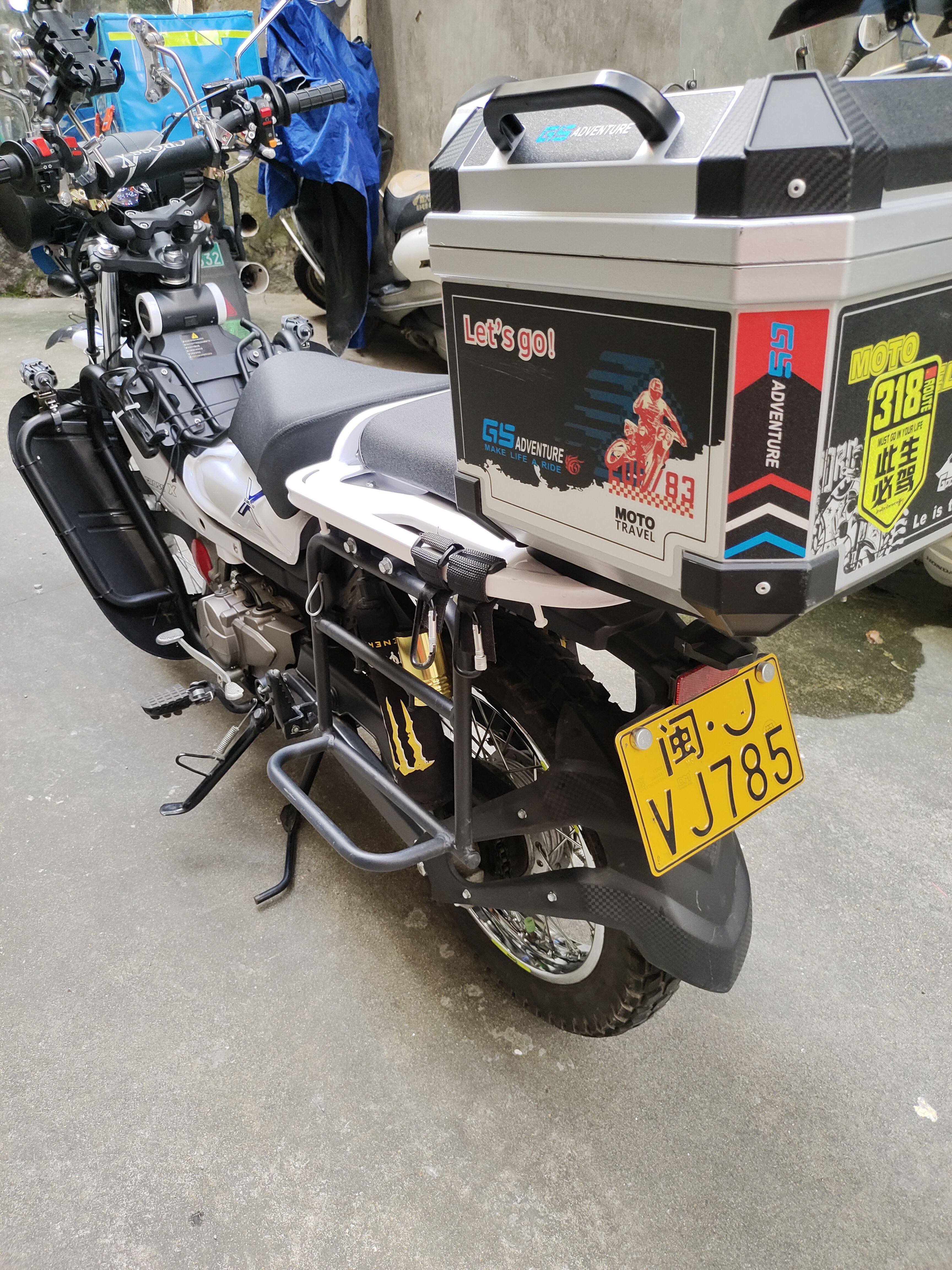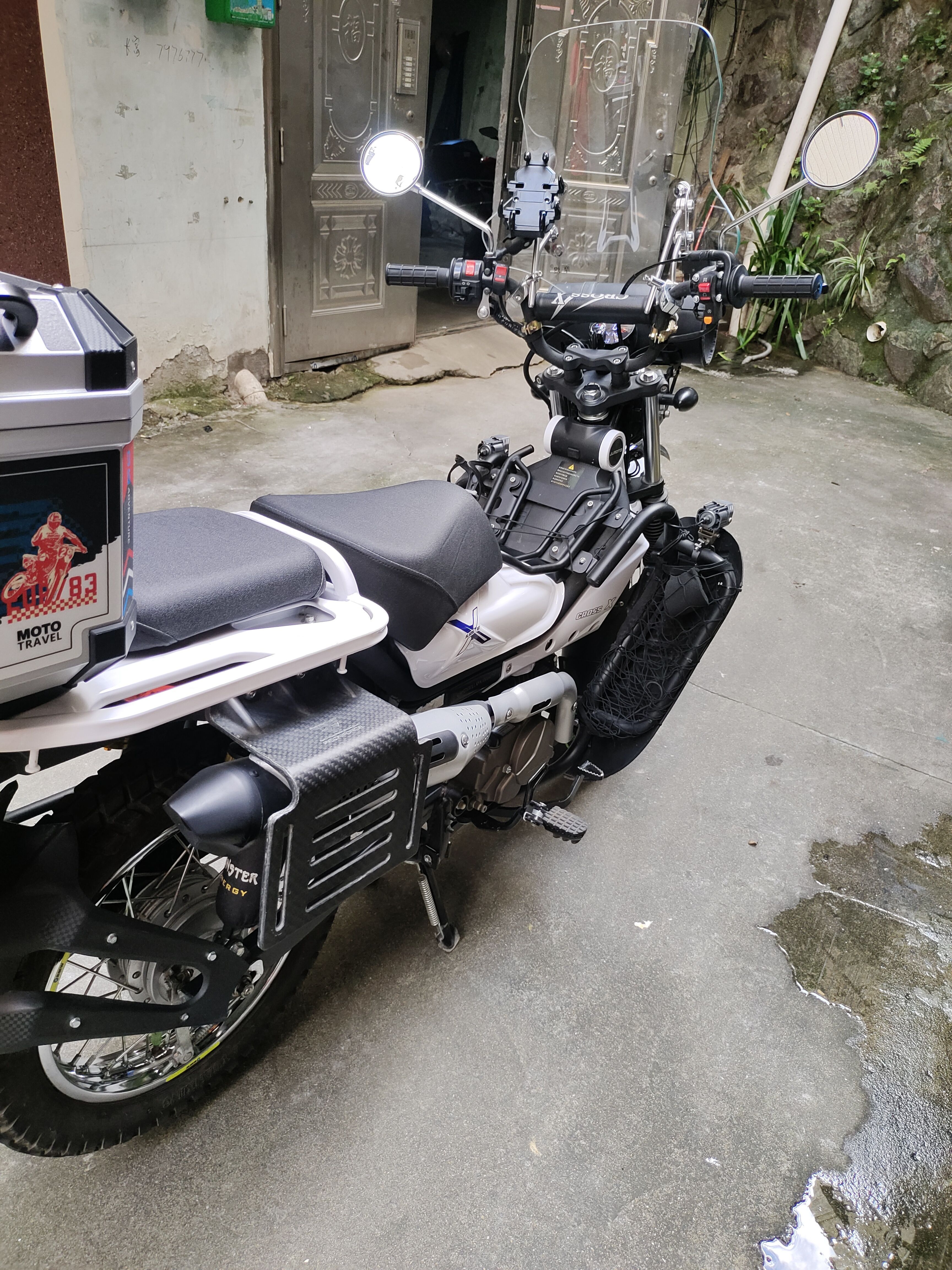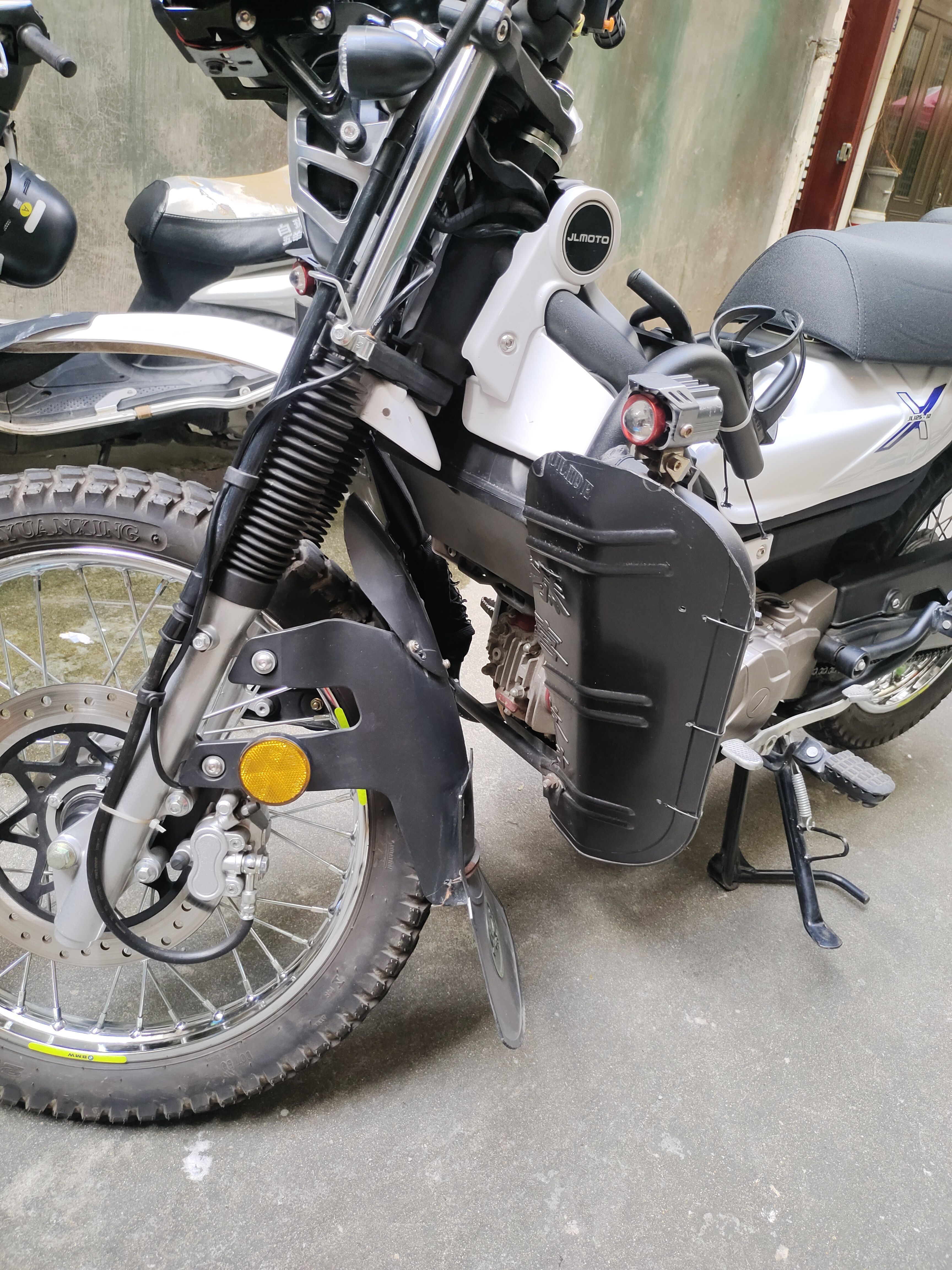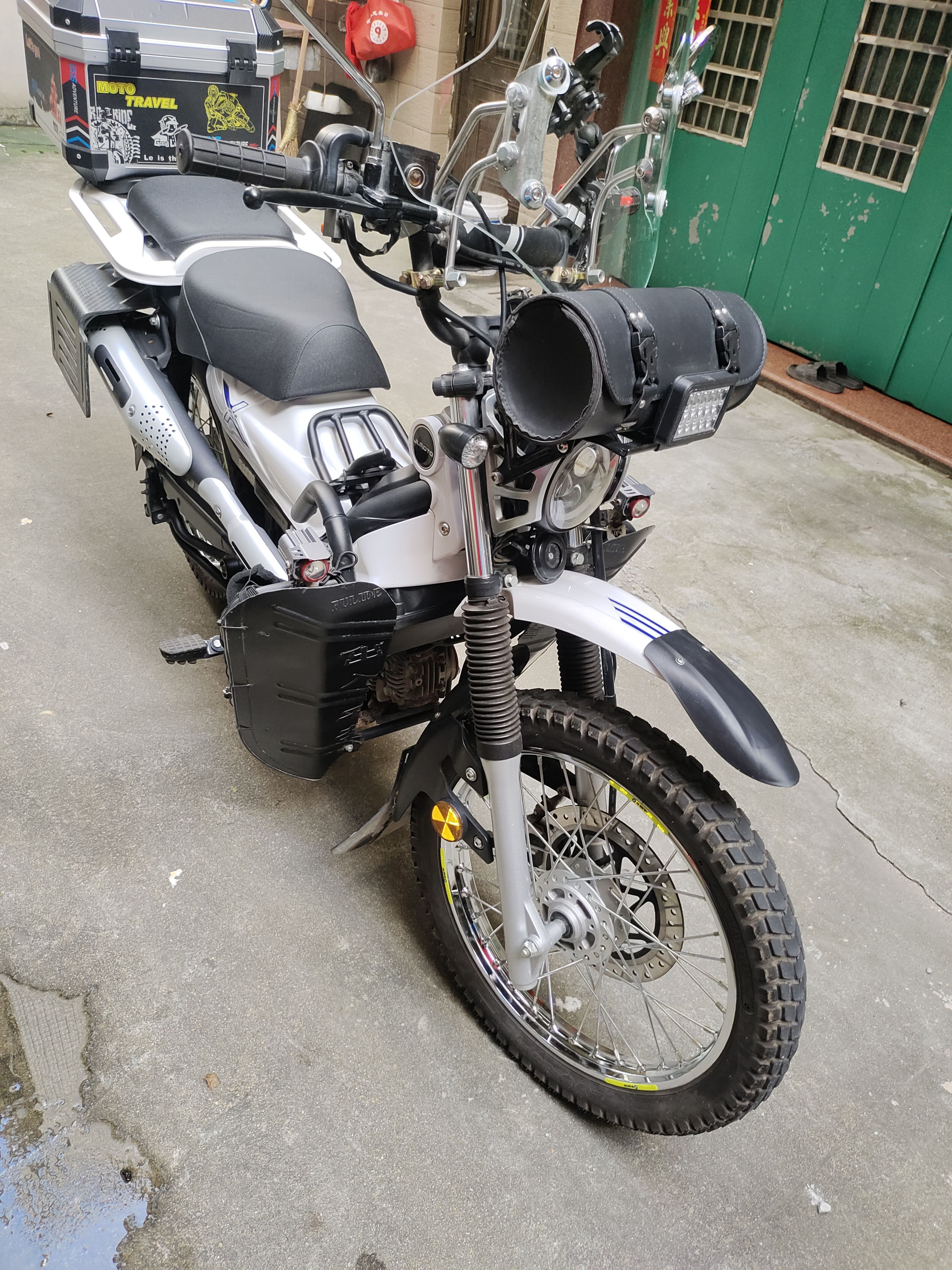 无事故,无剐蹭,加装钢化挡风玻璃、两边边架、双闪、射灯、防护保险杠、尾箱、防水溅,送个改装后坐垫。可小刀