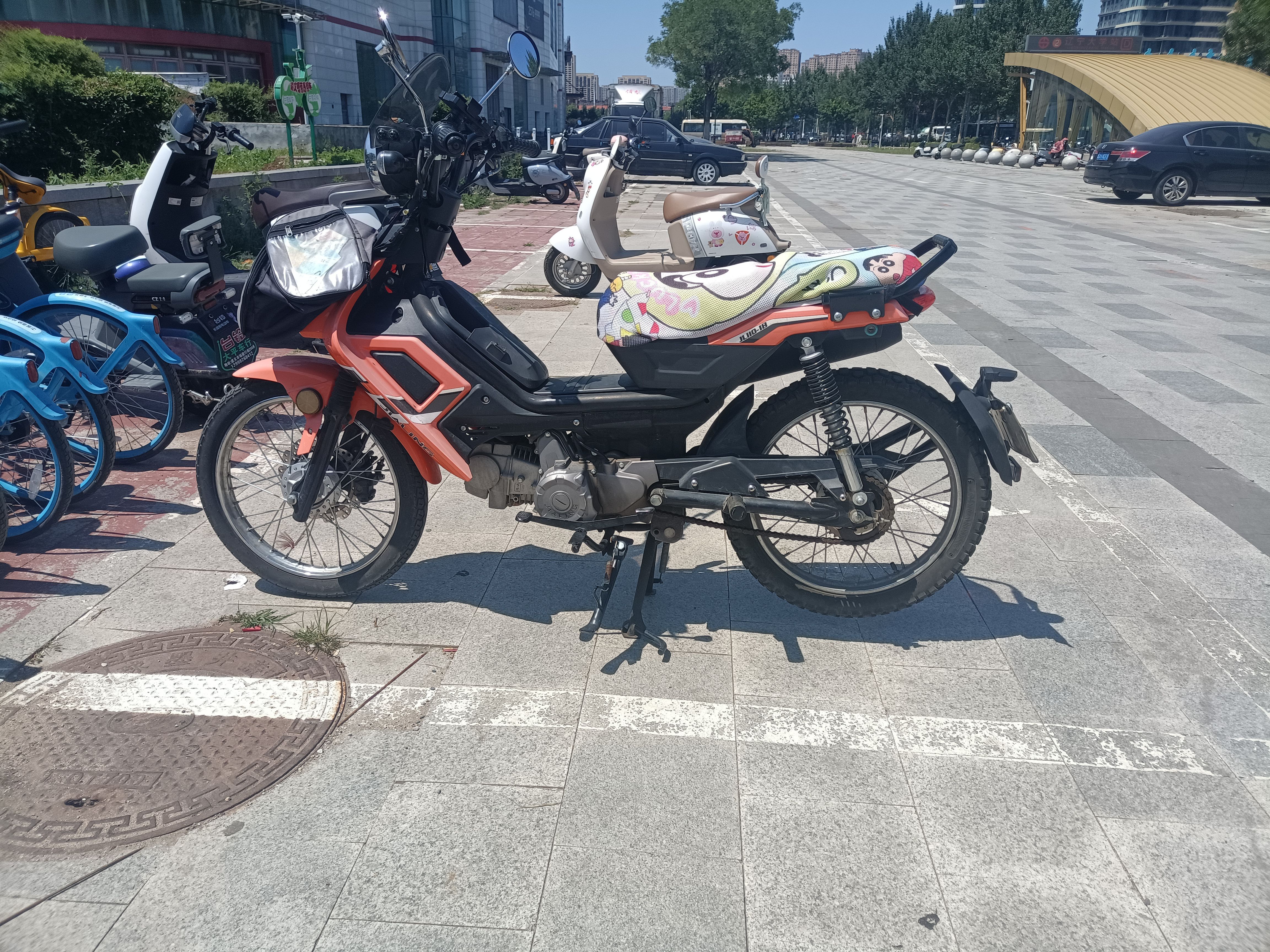 自己骑的个人一手嘉陵110,接娃买菜通勤非常方便,去年买的车,0.4万公里,新车一样,换车了忍痛出售,百公里2个油左右,超级省油,不到一辆电动车的钱,手续齐全,随时过户,无事故