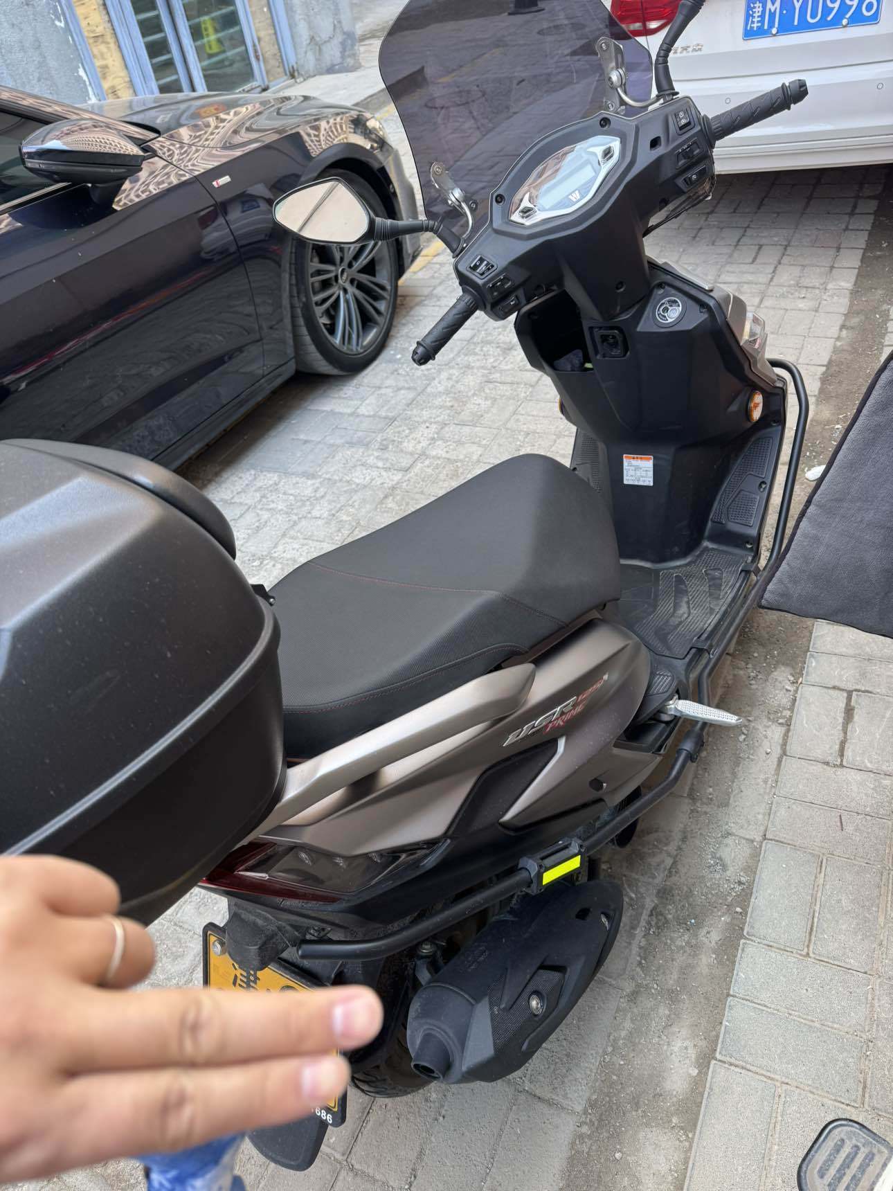 豪爵USR125,2024款,125cc踏板摩托,原车自带脉冲点火,边撑熄火,发动机启停,2025年9月上牌,1400公里刚做完首保,车况极品,液晶仪表,手续齐全,没摔过,动力足,油耗低,平时上下班骑,轻微使用痕迹,带原厂尾箱护杠,车在天津静海自提,车贩子勿扰,喜欢私聊看车,细节问我
