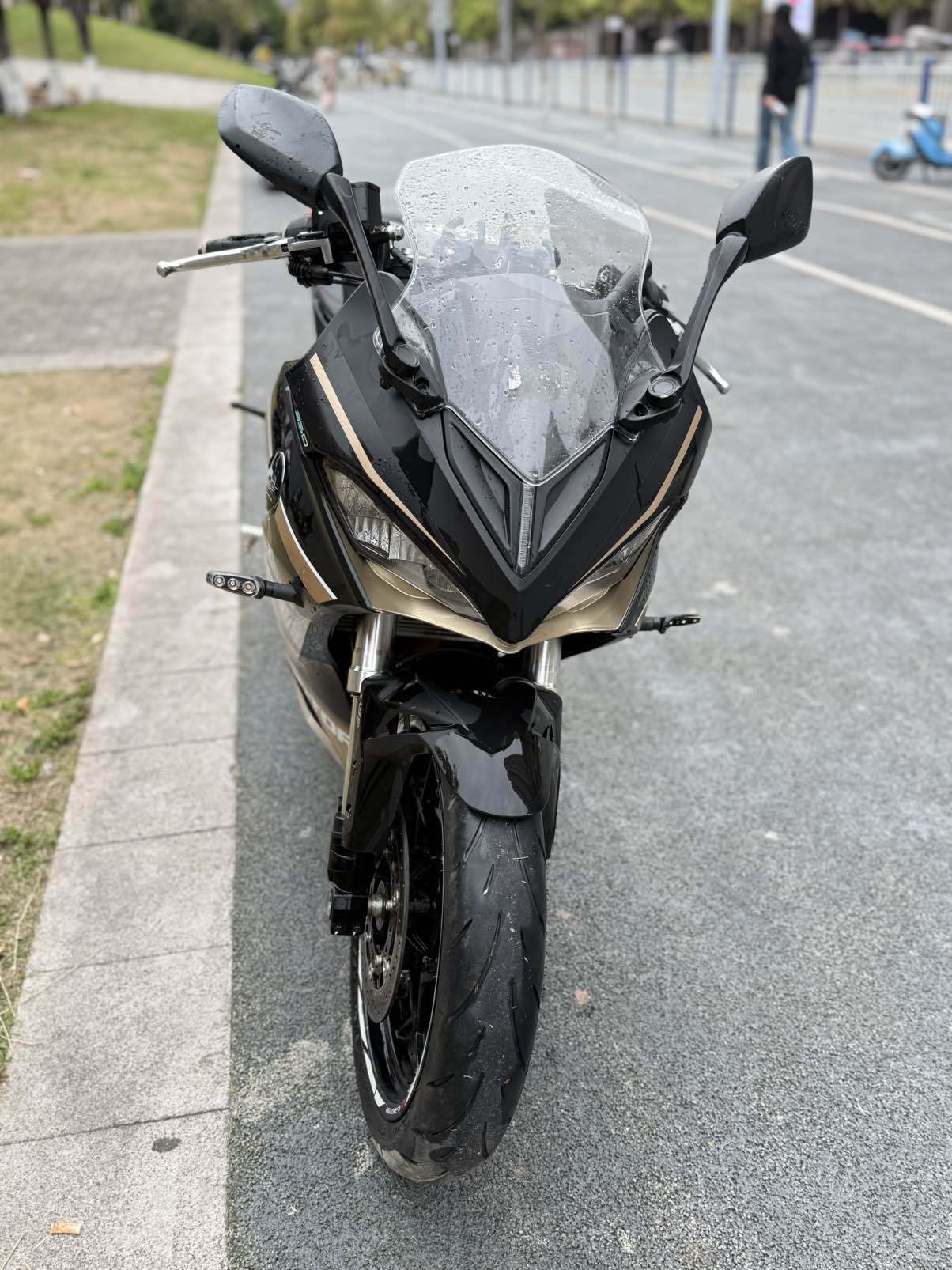 钱江赛350 黑金运动版 手续齐全,带行驶证,支持过户 350cc水冷双缸,动力很足,前后ABS,LED大灯,倒置减震,骑着舒服 成色还可以,正常使用痕迹,没摔过,发动机状态好 保险、大本都在,放心骑 同城自提优先,外地可发物流 价格好聊,喜欢私聊,细节图可发~
