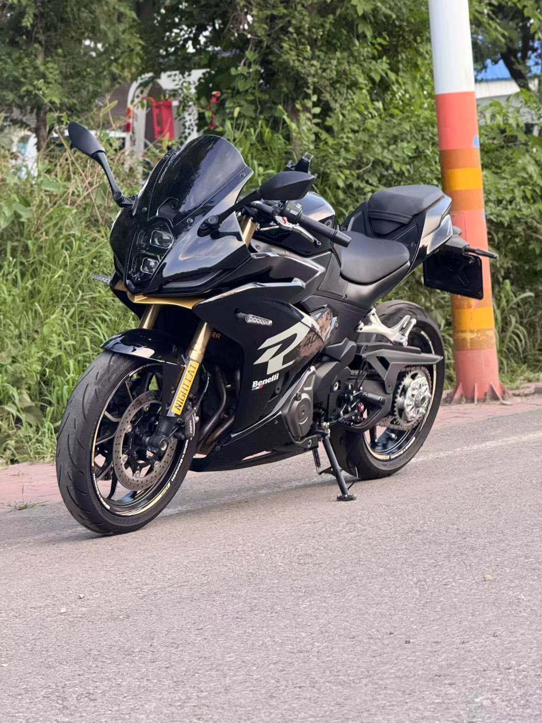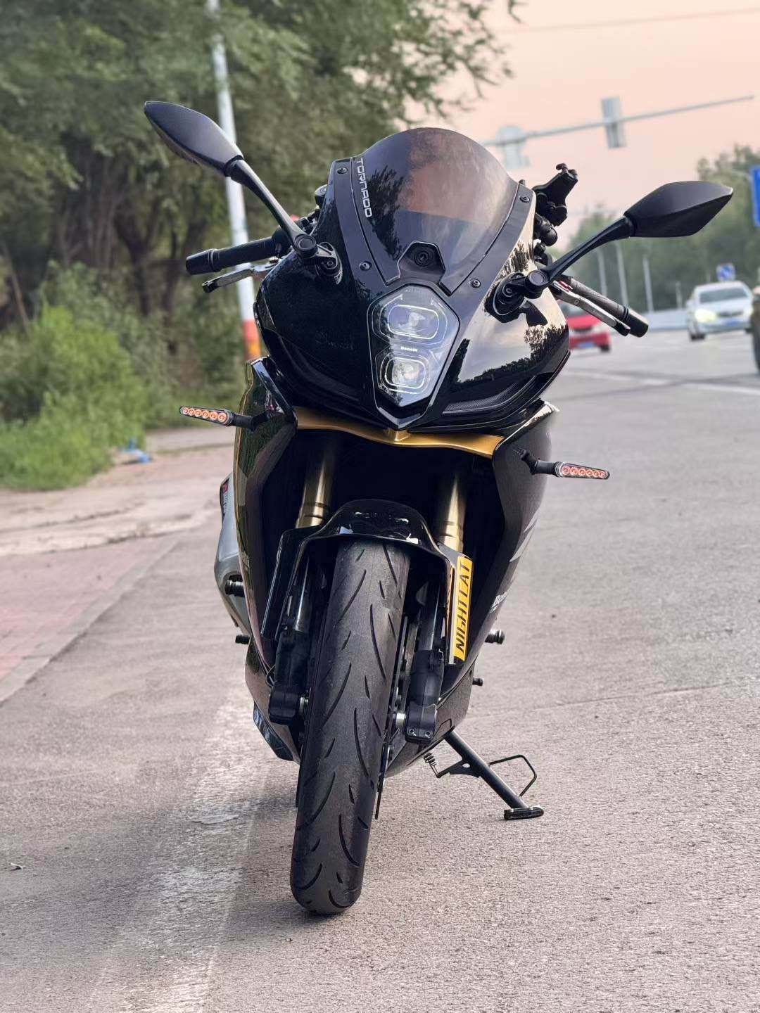 23年贝纳利龙卷风402r 奥古斯塔前头 原漆实表8000公里配置超级高 双缸400排量 后单摇臂 双通道ABS 极速170km/ h Marzocchi倒置减震 滑动离合适合新手 胎压监测 TFT液晶仪表 TCS牵引力控制 支持手机蓝牙投屏互联 led灯源 加装仪表贴纸 升高脚踏 快拆油箱盖 钥匙门锁 价格合适 一万多元 比春风450sr合适太多 比忍4好骑