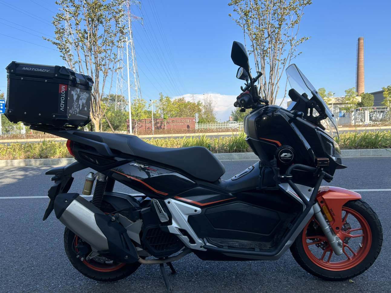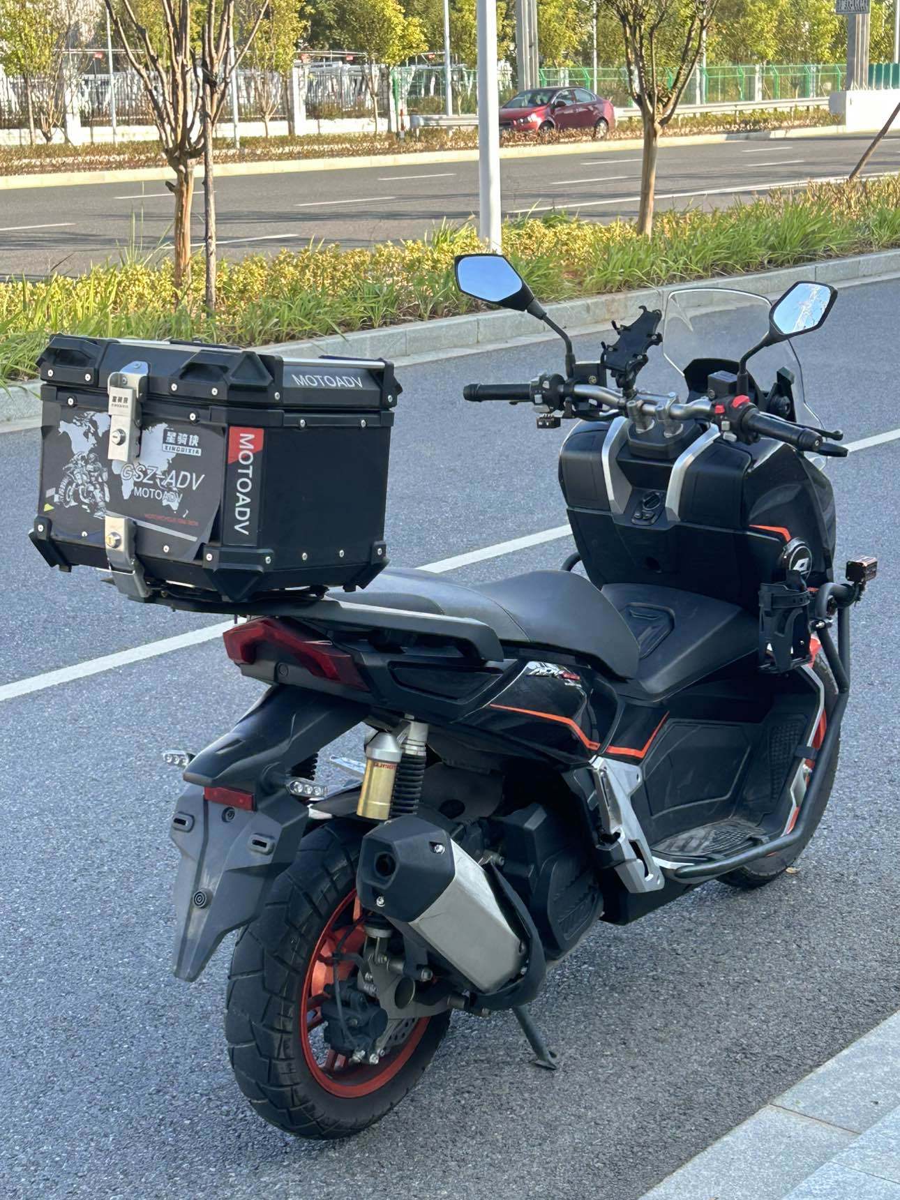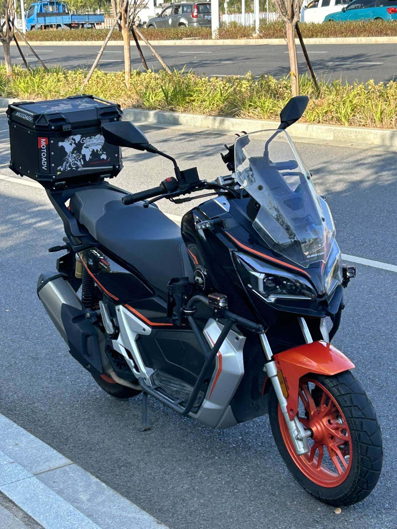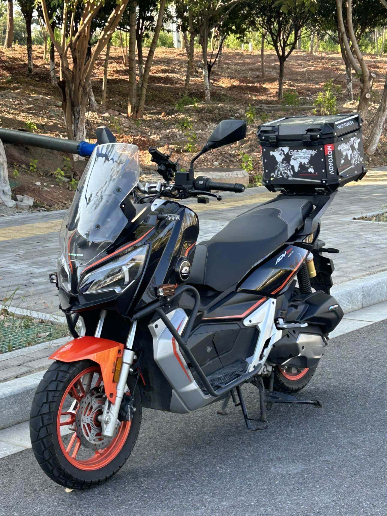 23年钱江鸿150ADV 安全行驶6000公里 顶配 带TCS防侧滑 ABS 全彩仪表 无钥匙脉冲点火 电子油箱盖和坐垫 自动LED大灯 手把背光 电助力 油箱8l 胎压监测 蓝牙投屏 APP车机 GPS定位电子围栏等等都有 高速稳定性很不错 车子很好骑 支持分期 定金留车!