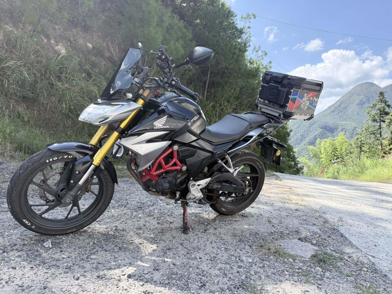 本田CB190R爆款神车,个人个人非车行,成色精品,小本子发动机是真香,无论如何暴力可劲造依然平顺不震。离合轻挂挡丝滑档位清晰,动力上打250下打150,通勤跑山压弯骑习惯了人车合一。这车改过增高码,坐姿有很大改善长途不累腰,正新半热熔胎抓地满OK的,点火一枪着。正牌正照保险到26年8月份,21年上牌,5399你拿下也算捡了漏圆了你那机车梦,玩两年随便还能卖5000,主要是车况好,开不坏的本田不是盖的,有了她还要啥自行车