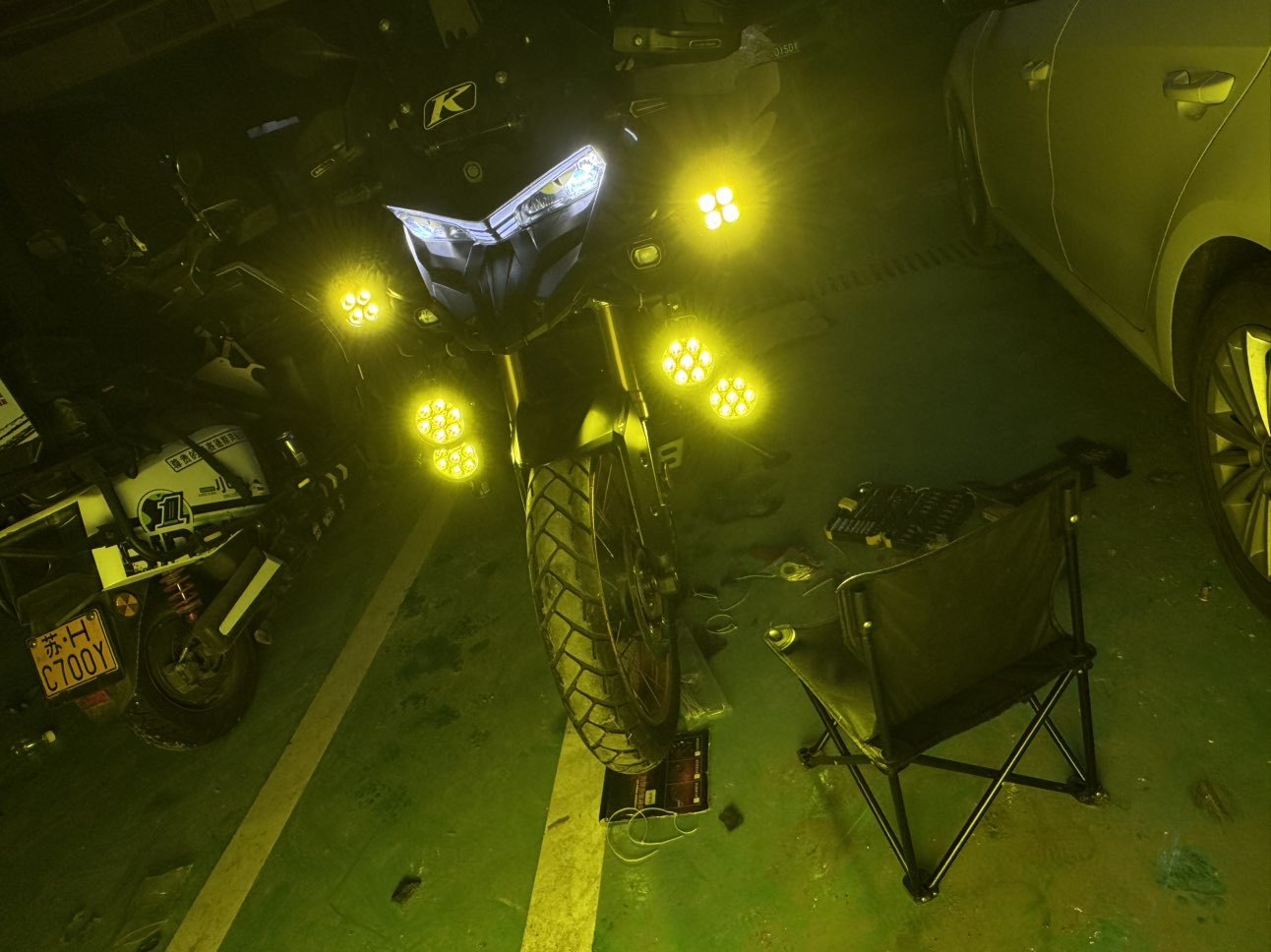 加装三组灯加大风挡刚刚保养的7100机油没有倒车改装排气