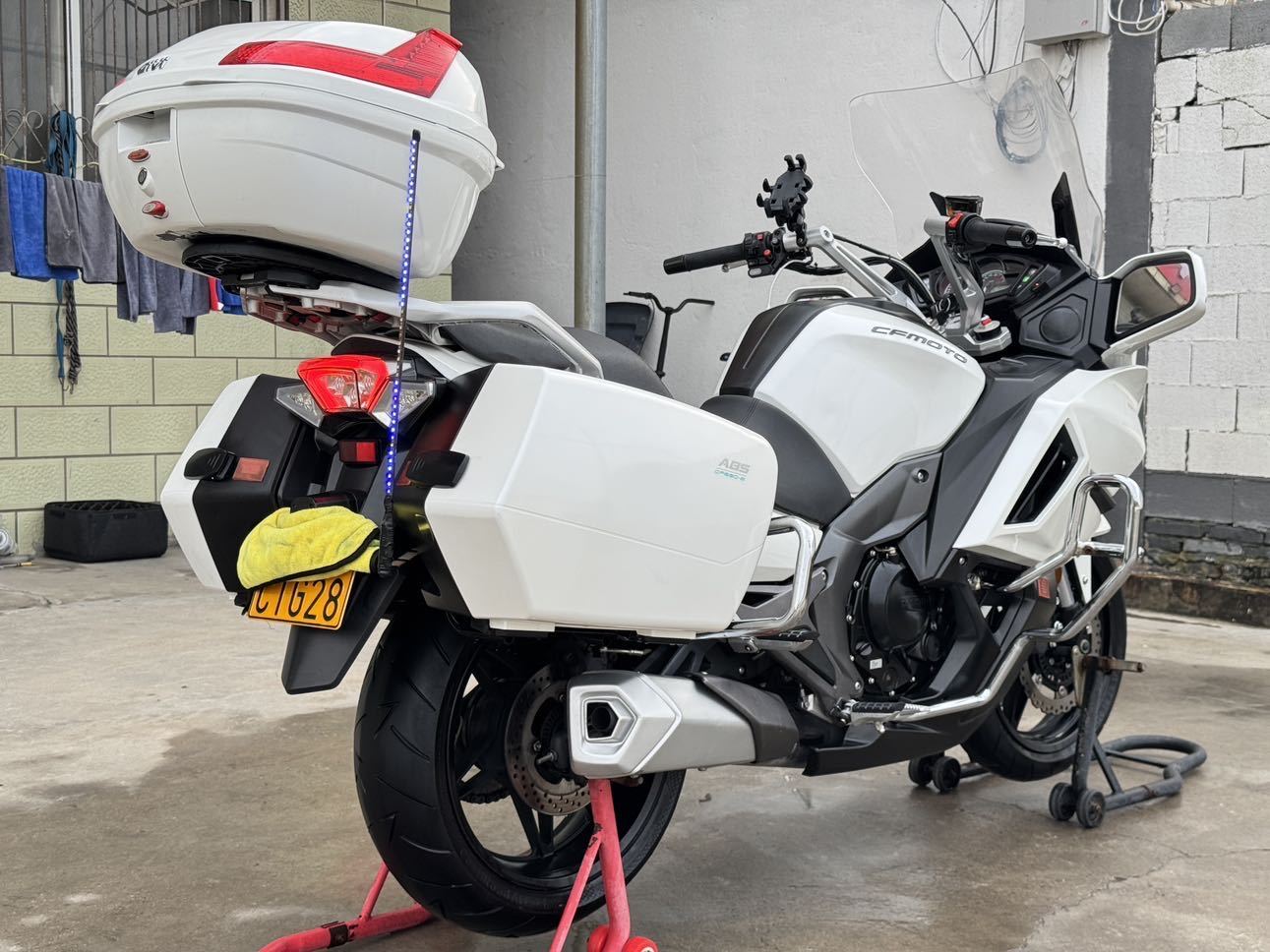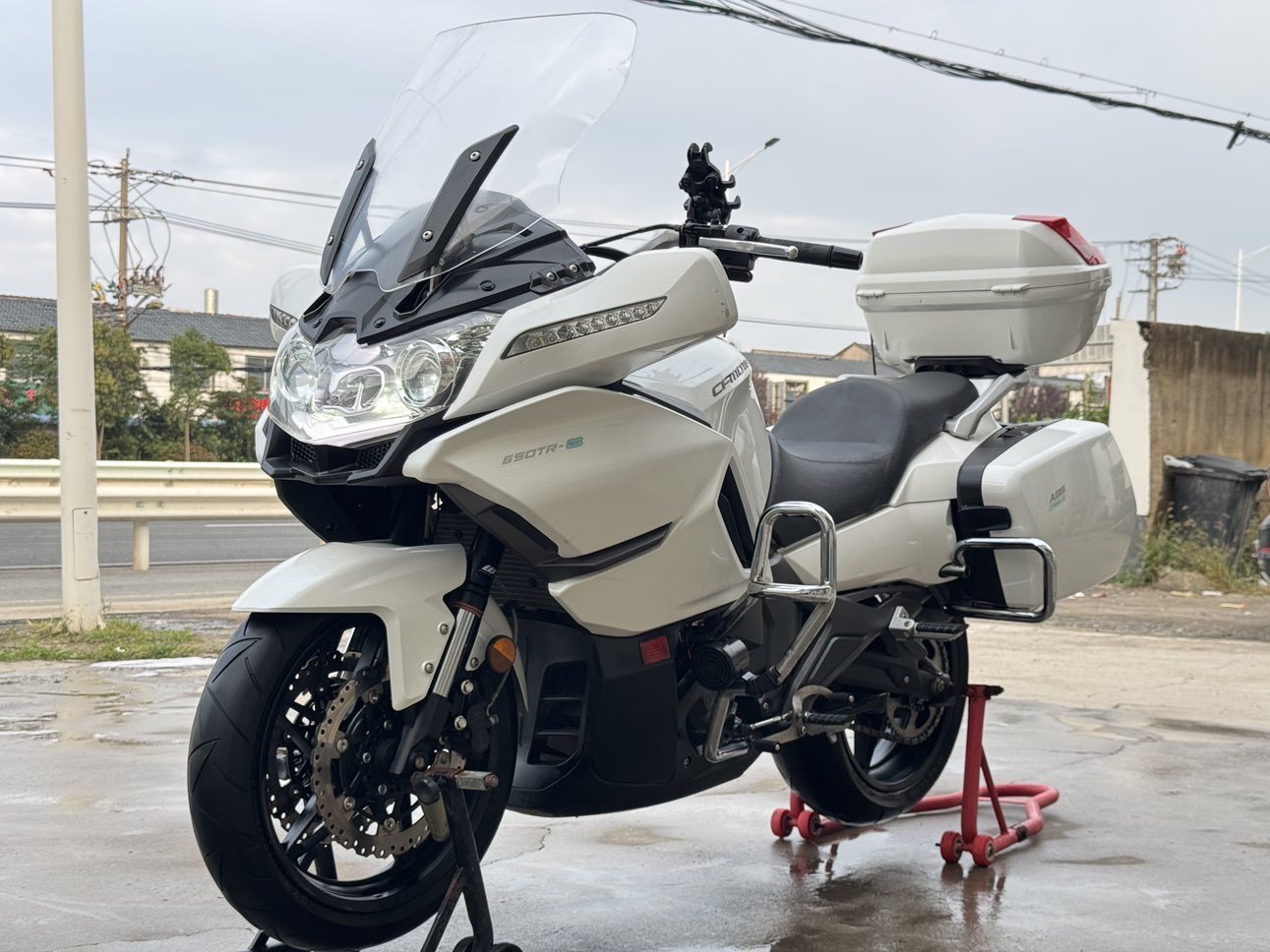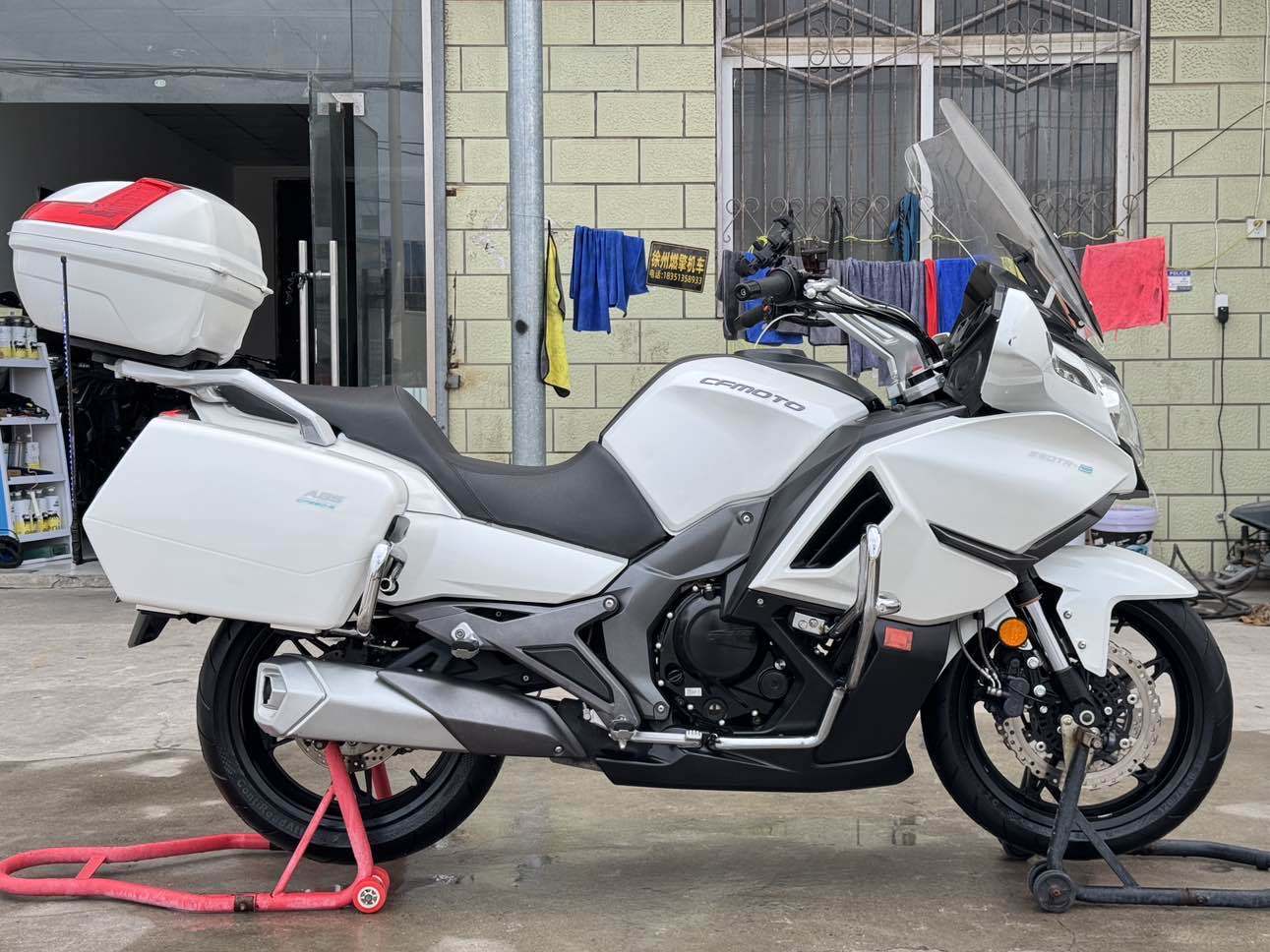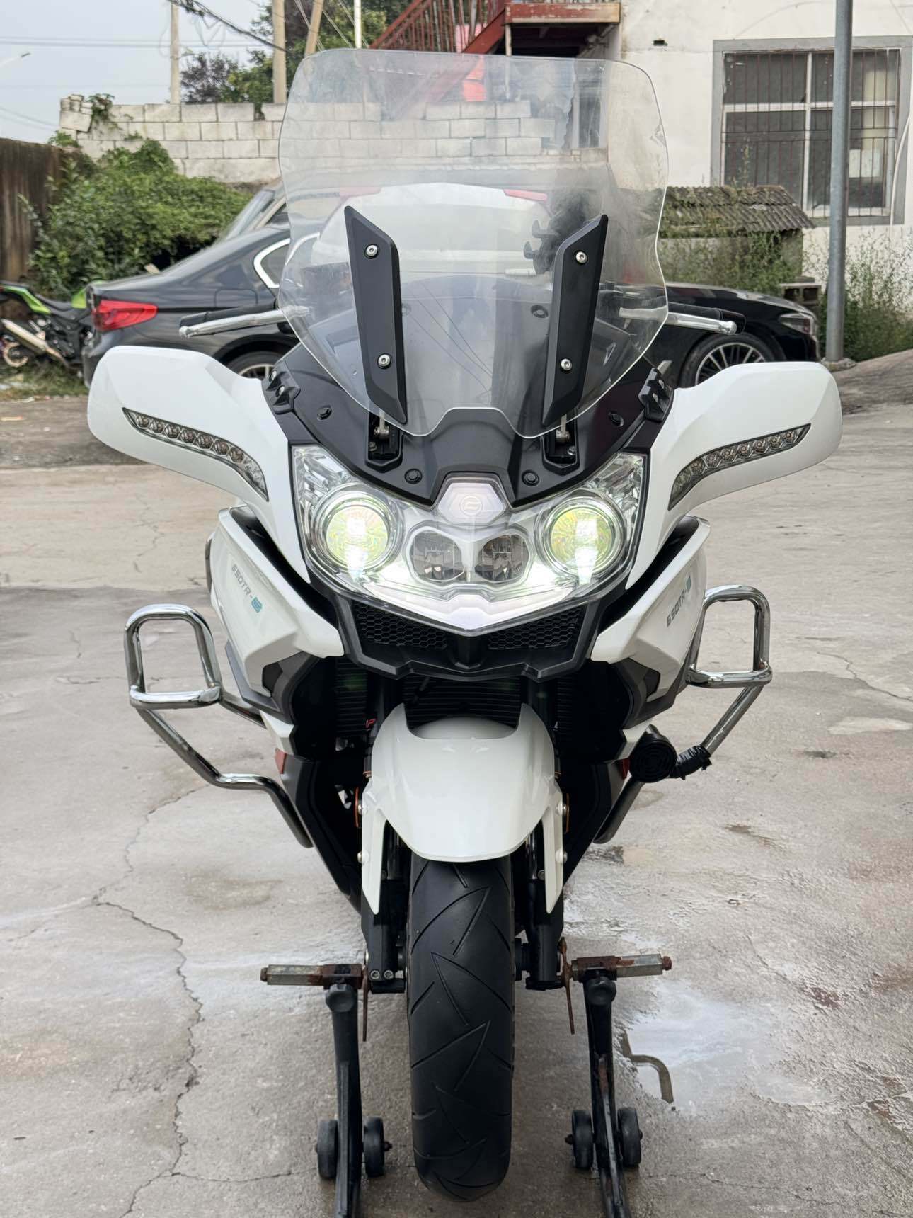 2017年7月登记上牌2018款春风国宾650,过户一次(一手车主),安全行驶7000多公里实表。车辆无事故,发动机无拆无修,车况精品,机器滴油不渗,减震干爽不漏,原厂轮胎,原厂刹车盘,前后配备abs防爆死,电喷水冷双杠发动机,最高时速170,油箱容积22升,整备质量252kg、无极可调电动风挡带记忆。全车LED光源,保险到2026年8月14日,年检到2027年8月1日,到手0投资,手续齐全,随时提档过户。支持全国物流。 #二手摩托车 #国宾650 #旅行车 #婚庆车队