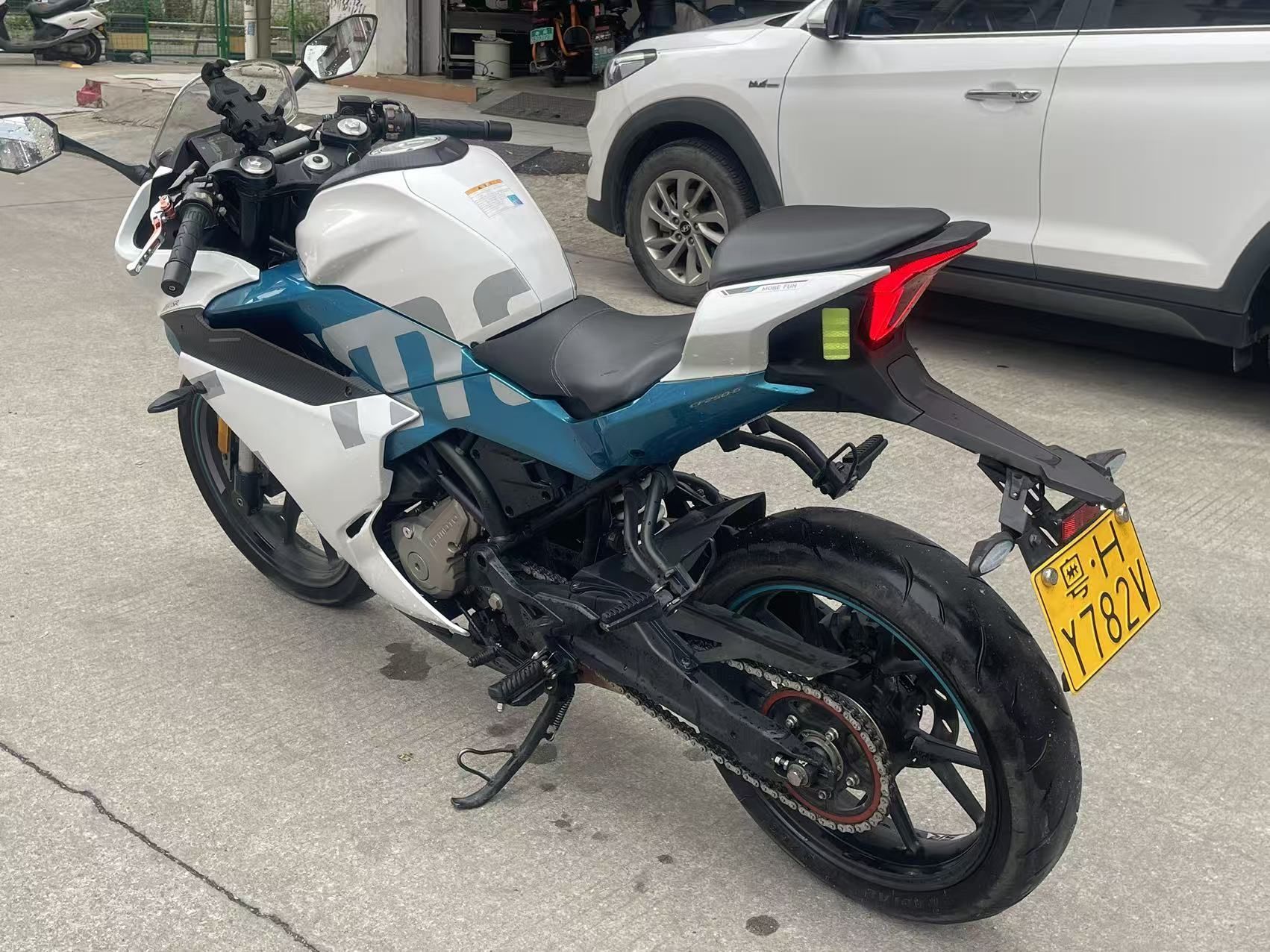 21年春风SR250高配,车况精品,车况成色新,行驶一万一公里,发动机安静有力,无拆修,加装手机支架,改折叠牛角,必须过户,价格6880