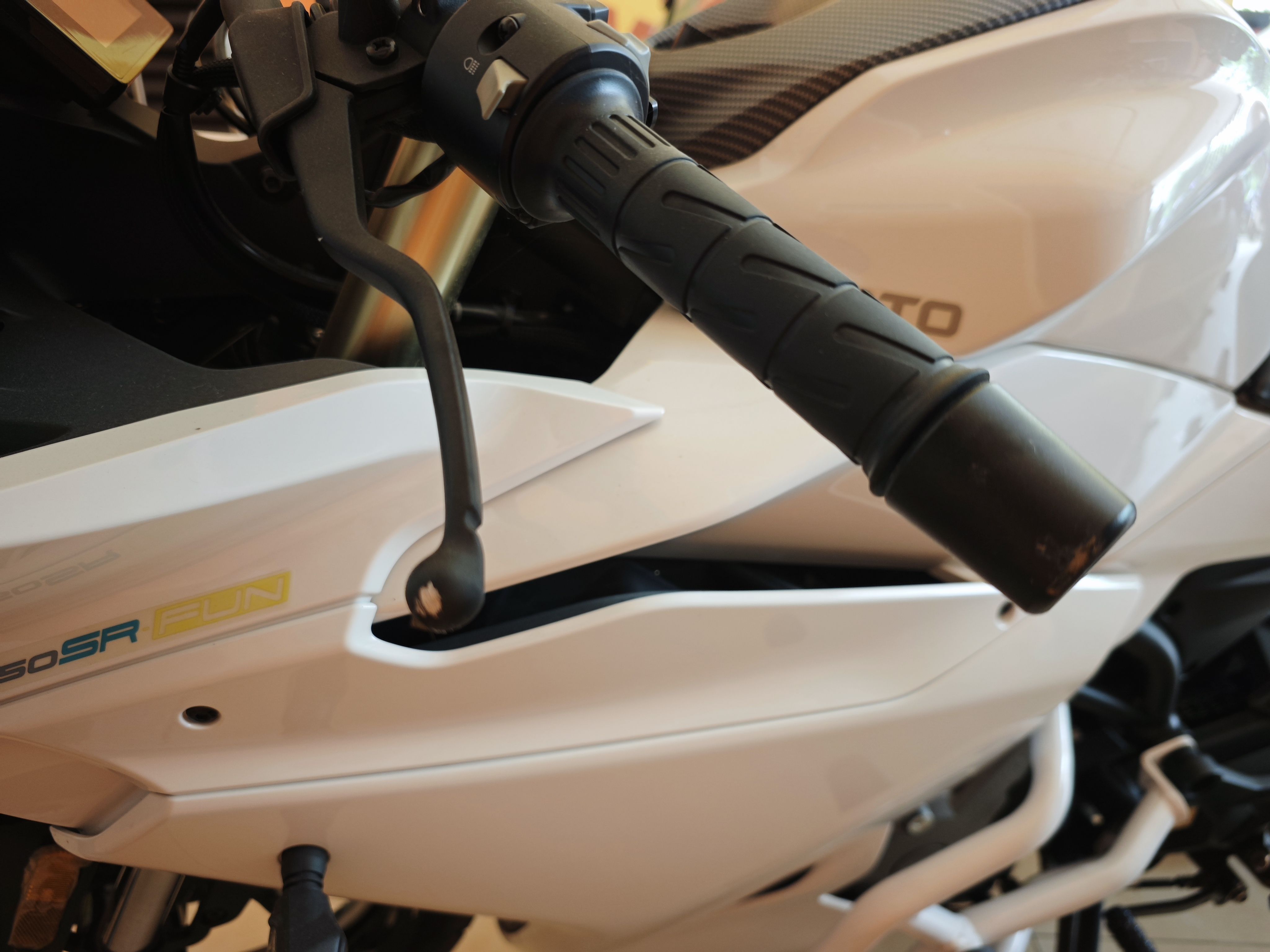 春风250sr-fun版2023款,5000公里。公里数逐渐增加中。 2024年5月上牌,25年1月购入,第二手车。 左侧倒车,左尾翼、手把、离合、后视镜、护杠有磨损。膝盖夹油箱处因护膝磨到有一点黑。 加装护杠、手机支架。 保险期限到26年5月。材料齐全,要求过户。 ***贴在车在,不用问车还在不在,问的懒得回***