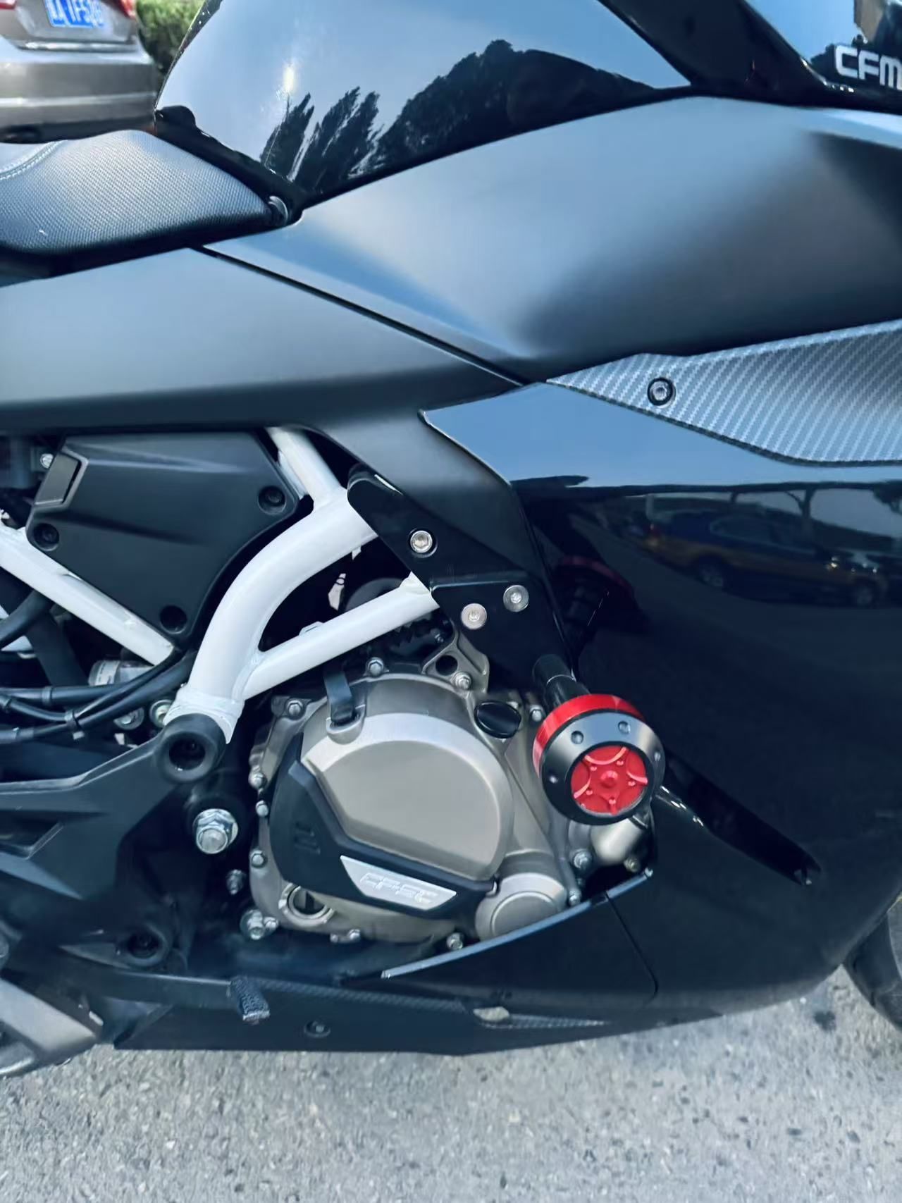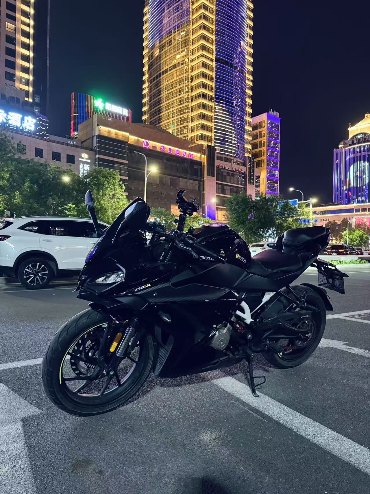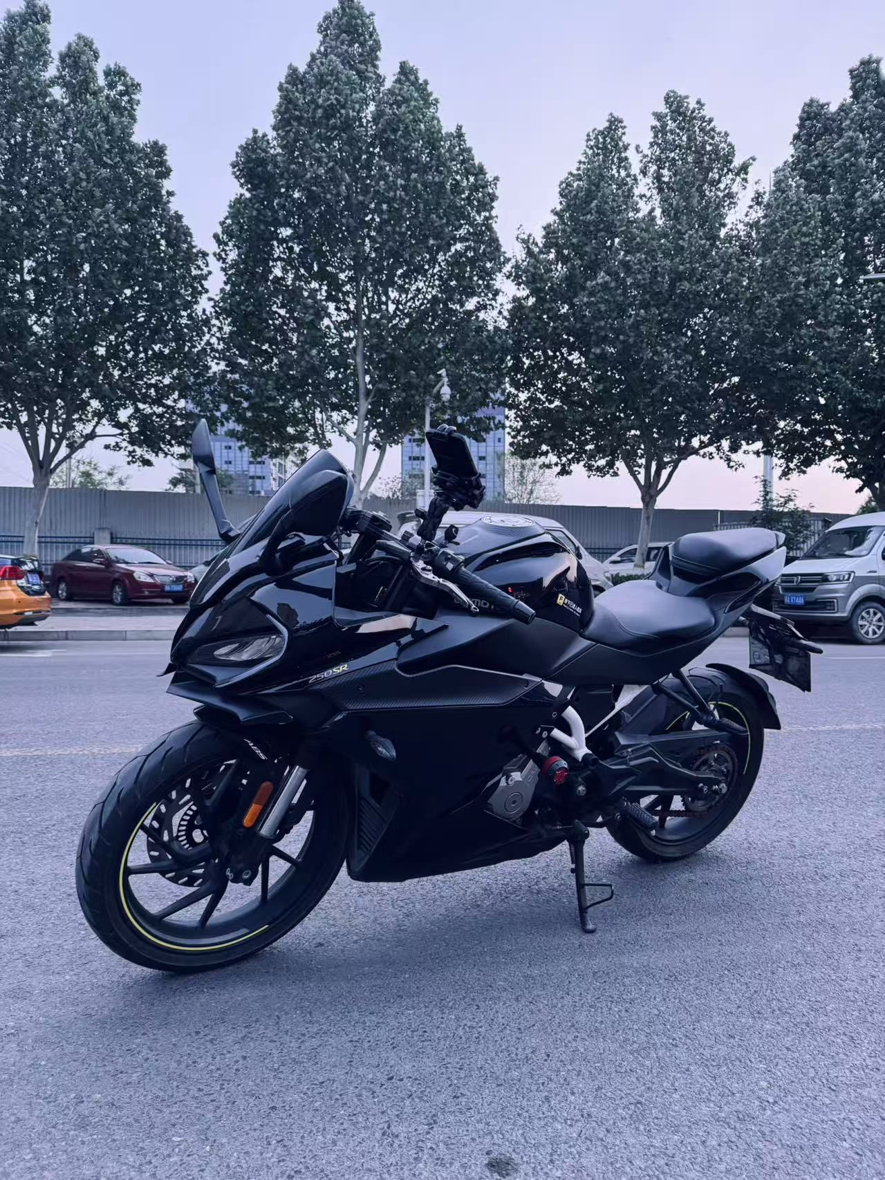21年春风250sr黑骑士 整车ax钢琴黑车衣 4000公里 全程地库长大 极品成色 新车啥样就啥样 250级别颜值巅峰 前后半热熔轮胎 加装cnc防摔 熏黑竞技风档 手机支架 冀a随时看车过户 无需提档 保险
