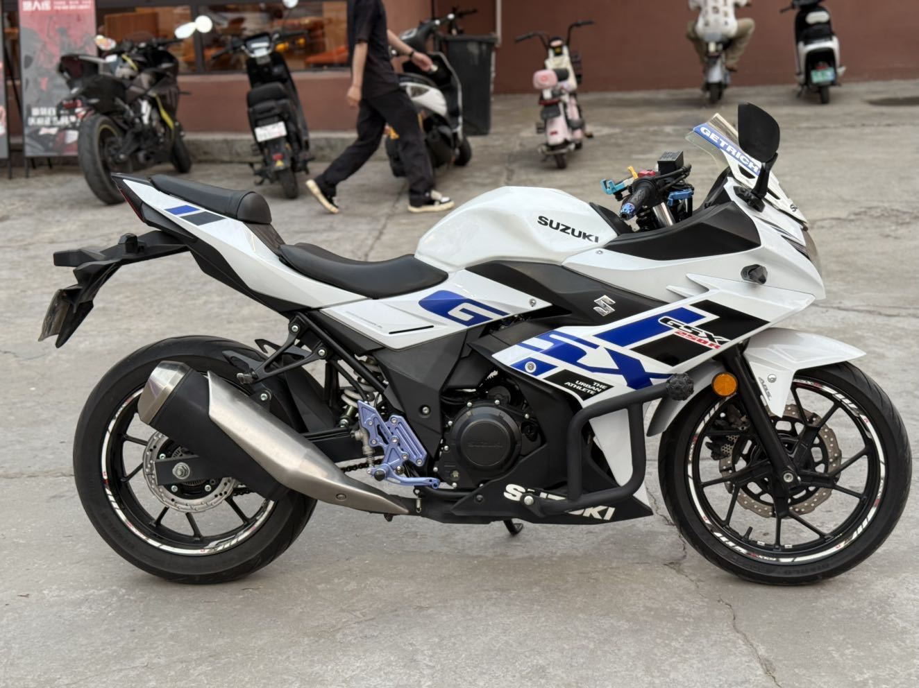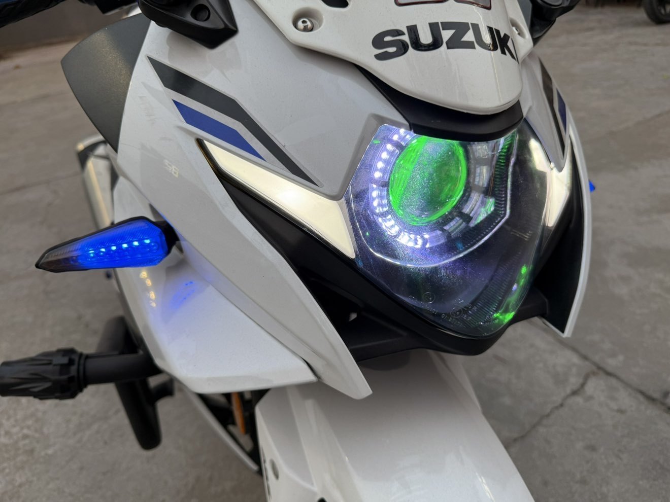 23-9 铃木GSX250 一手户升级全车氛围灯光 天使眼透镜大灯 颜色可调 倍耐力前后恶魔 EK黑金链条 牙盘三套件 风挡 护杠升高脚踏 分离手把 刹车牛角 五匹手机支架 必须过户
