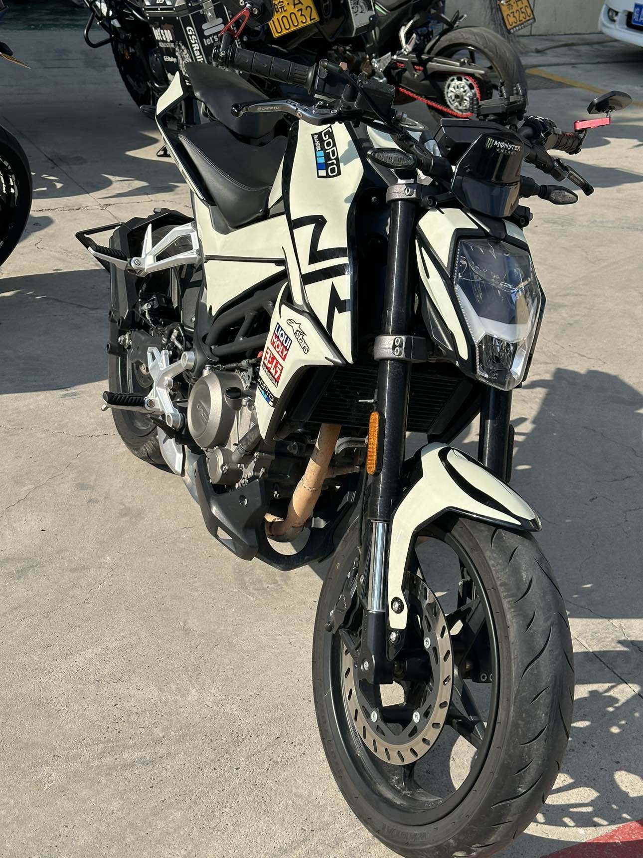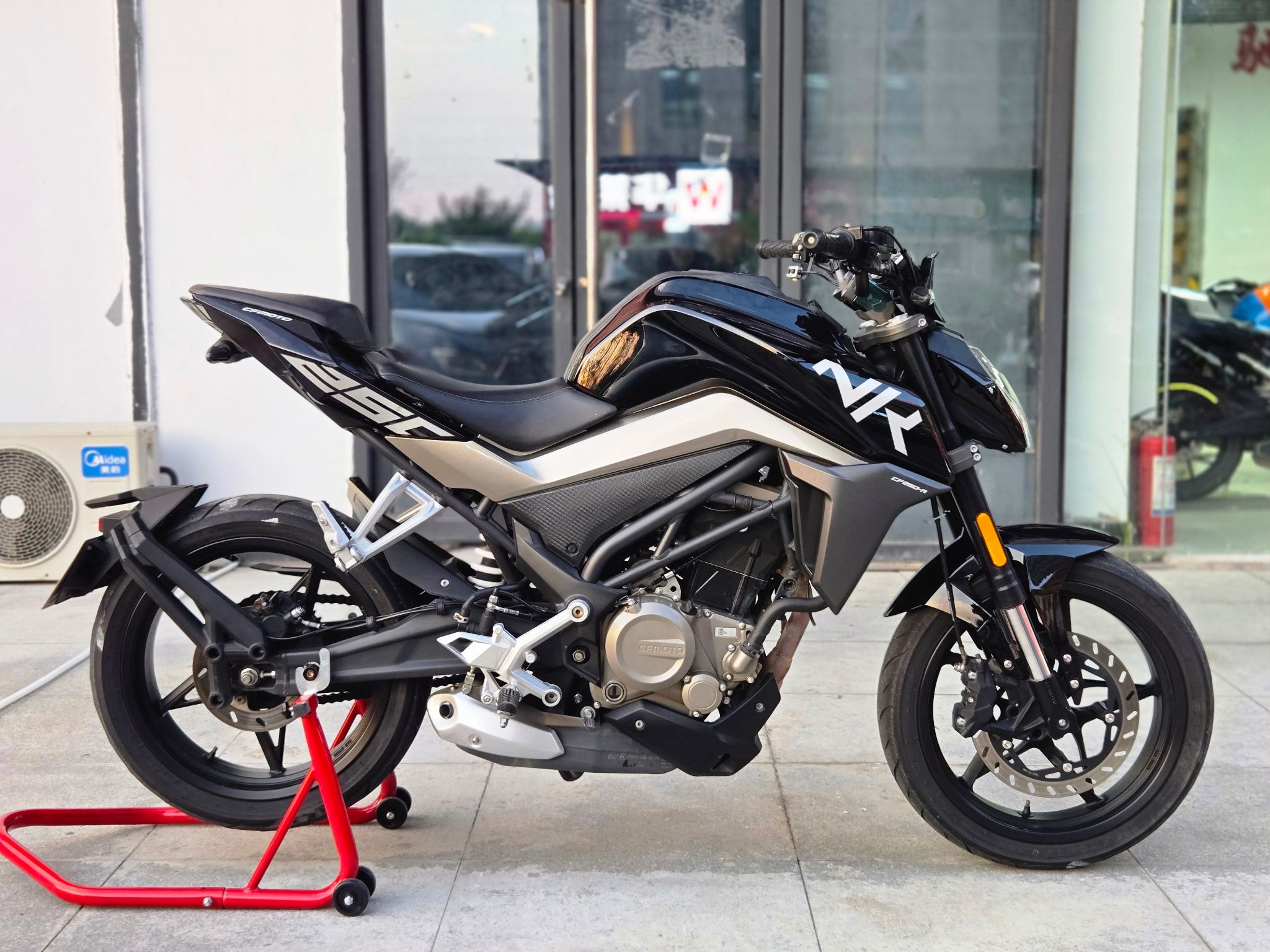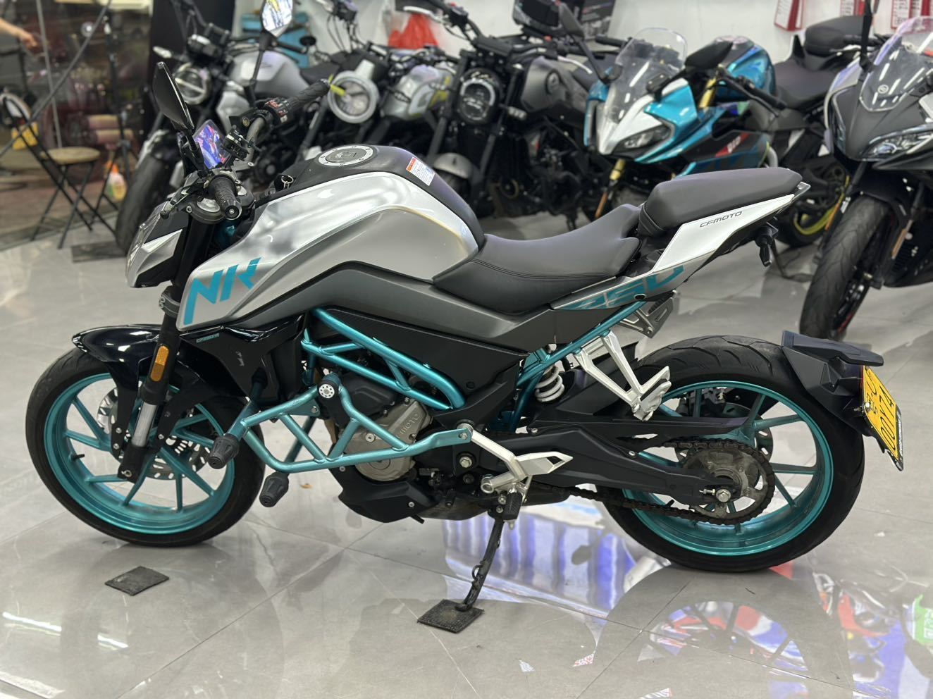 【车型】春风nk250(高配版) 【年份】2021.07 【里程】3800+公里 【手续】牌证齐全 全国过户 【介绍】热门街车车型,彩色液晶仪表 前后ABS ,两种动力模式,加装手机支架,防摔护杠等,精品车况 现车在店 欢迎咨询联系!