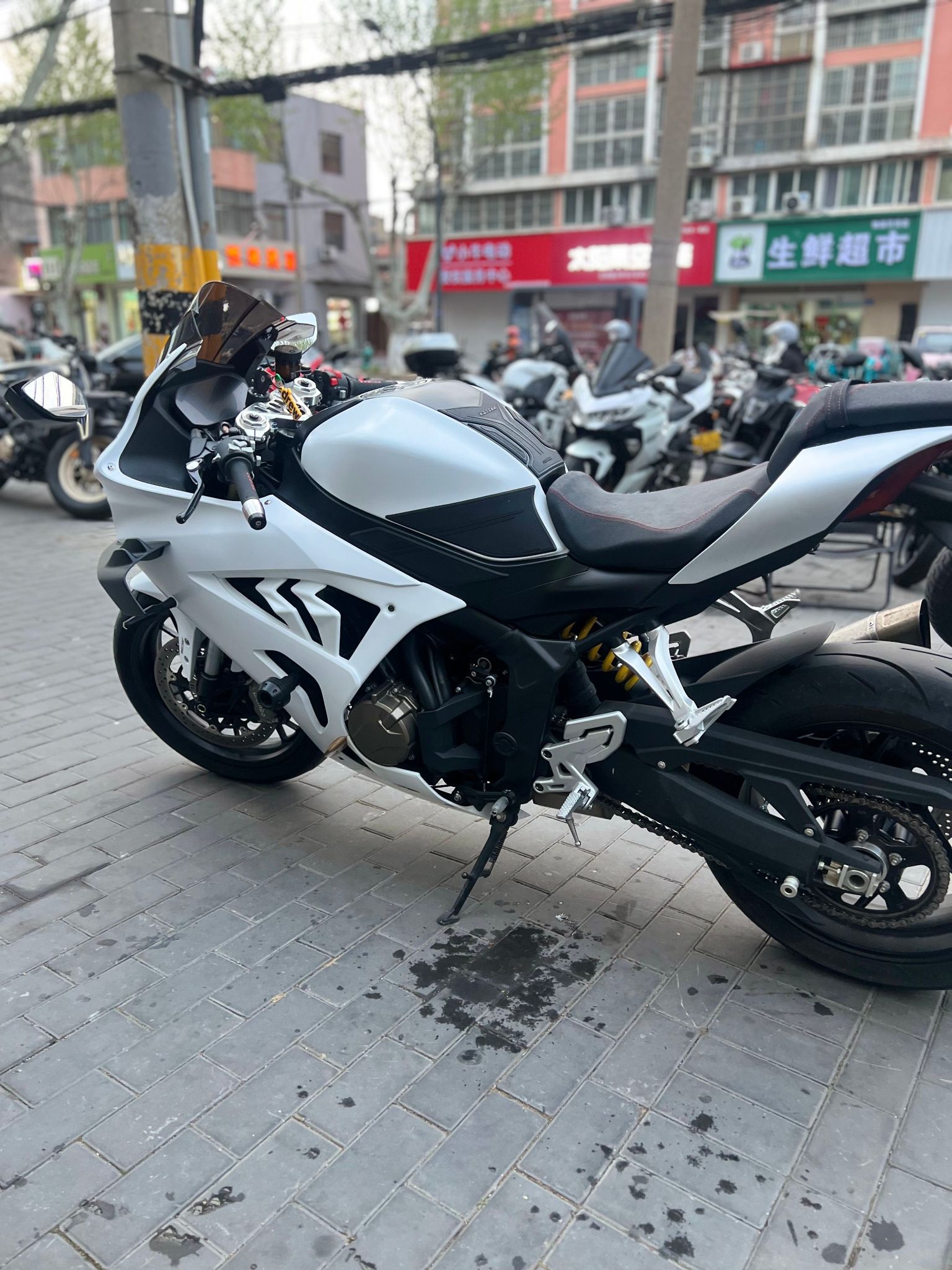 车况如图成色非常好,改装了阀门排气,三星板,分离车把,大牛后视镜,挡风玻璃,驼峰后座,原装东西都在,谁要一起送。