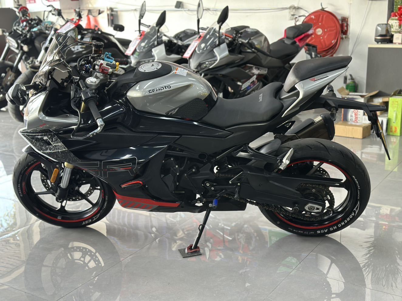 车型:春风450sr 年份:2023.02 公里:9000+ 手续:全国提档过户 简介:热门仿赛车型,网红车型,原车自带ABS,加装概念款定风翼,能量条转速表,宝马风挡,升高脚踏,brembo黑红水鸟卡钳,手把护弓,手机支架等,精品车况,价格合适,喜欢联系!
