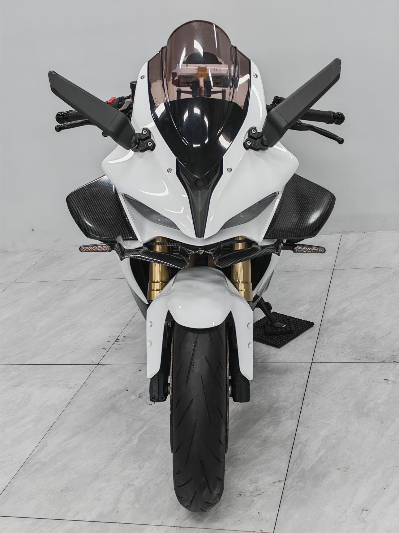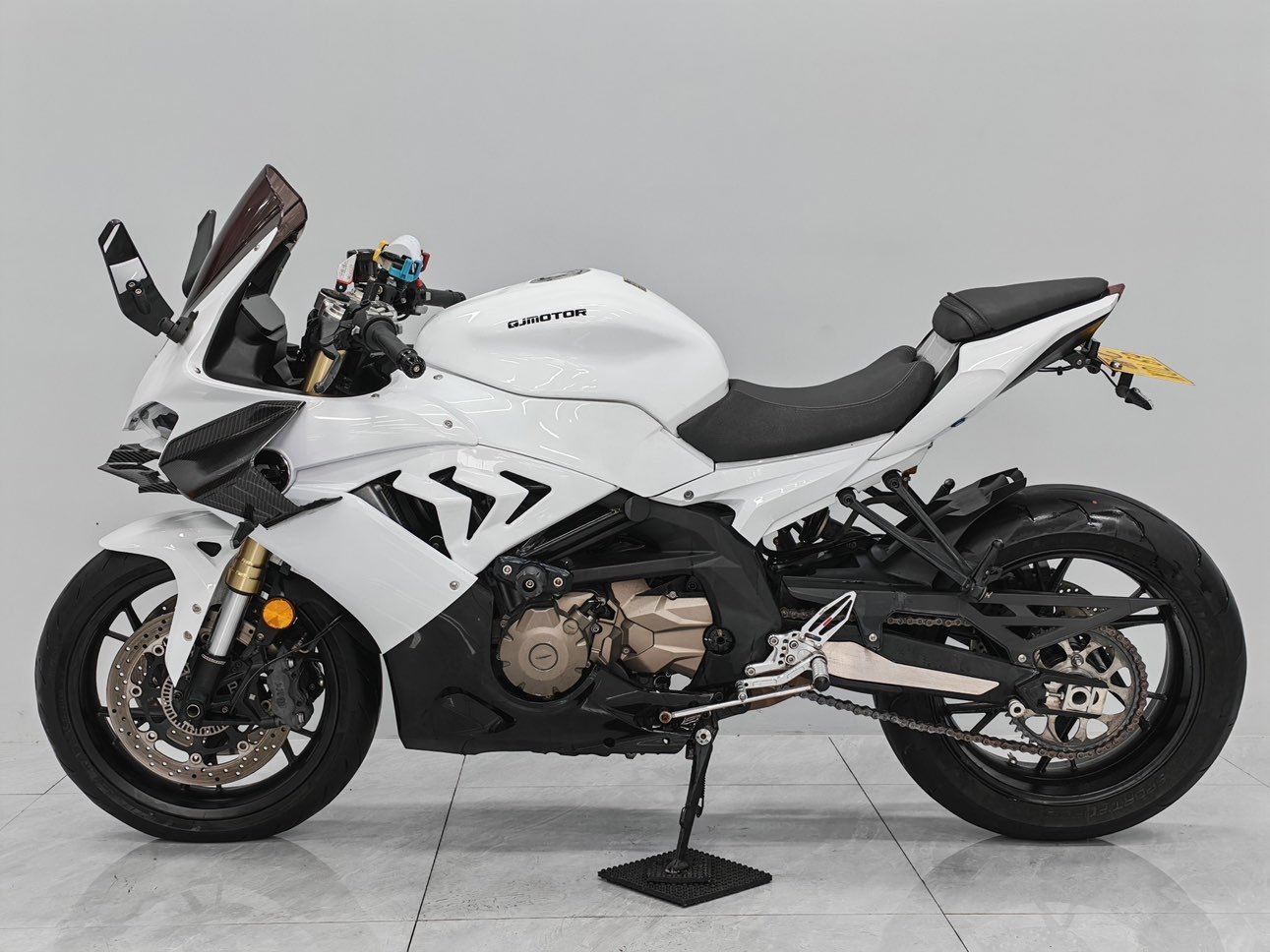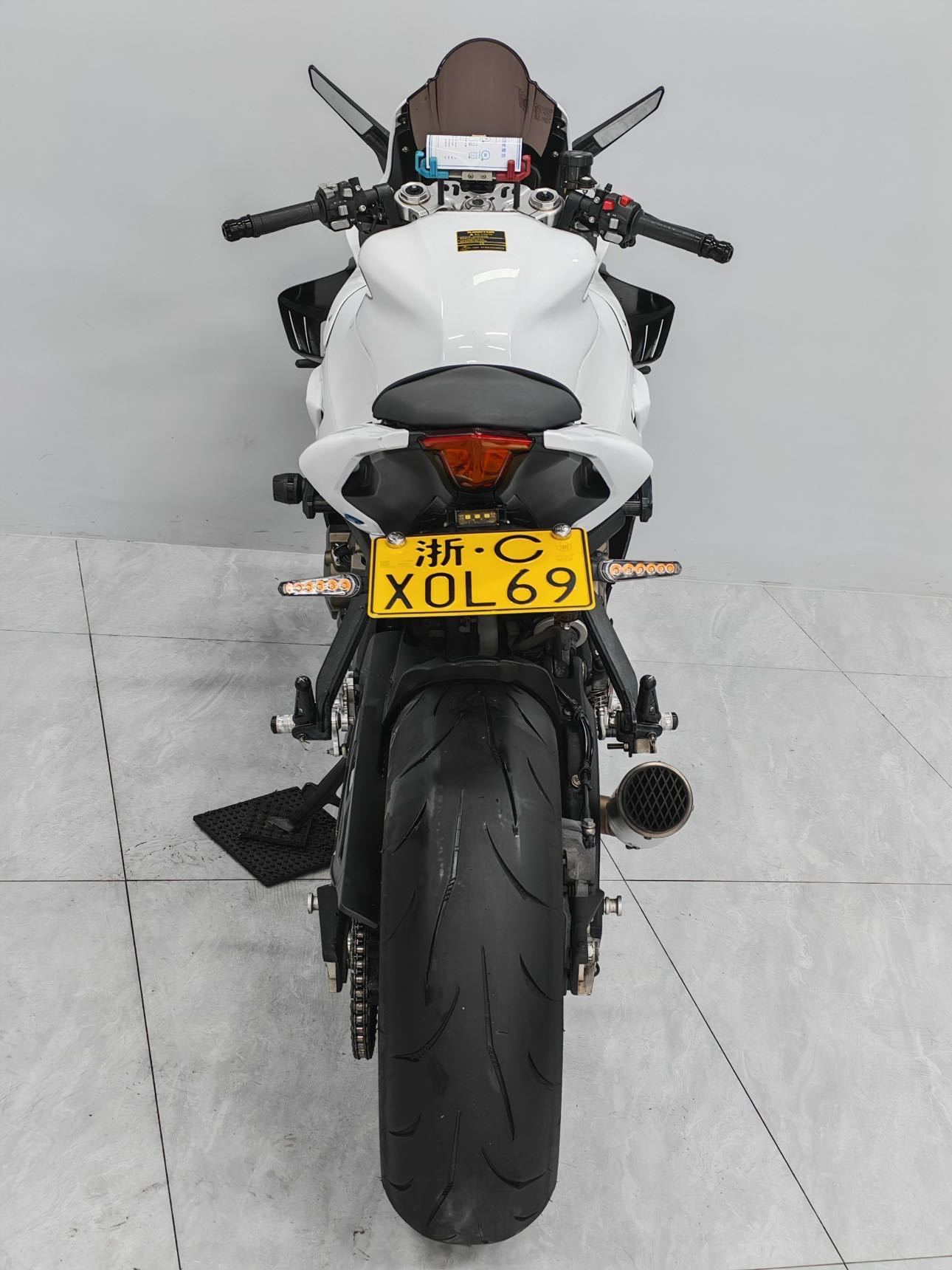 23年钱江赛600亮剑版 仅行驶8000多公里,只过户一次 四缸600cc水冷发动机,88匹强劲动力 滑动离合配备,前后ABS刹车系统,CST正新轮胎 倒置马祖奇避震,双碟双盘西户卡钳,全彩液晶仪表 做工精致,可以蓝牙互联与手机投屏,非常实用 配置 宽体定风翼,前唇,风刀后视镜 合金升高脚踏,鲨鱼鳍,熏黑风挡 五匹防抖手机支架,短尾,合金上三星 全段SC直通排气全部赠送