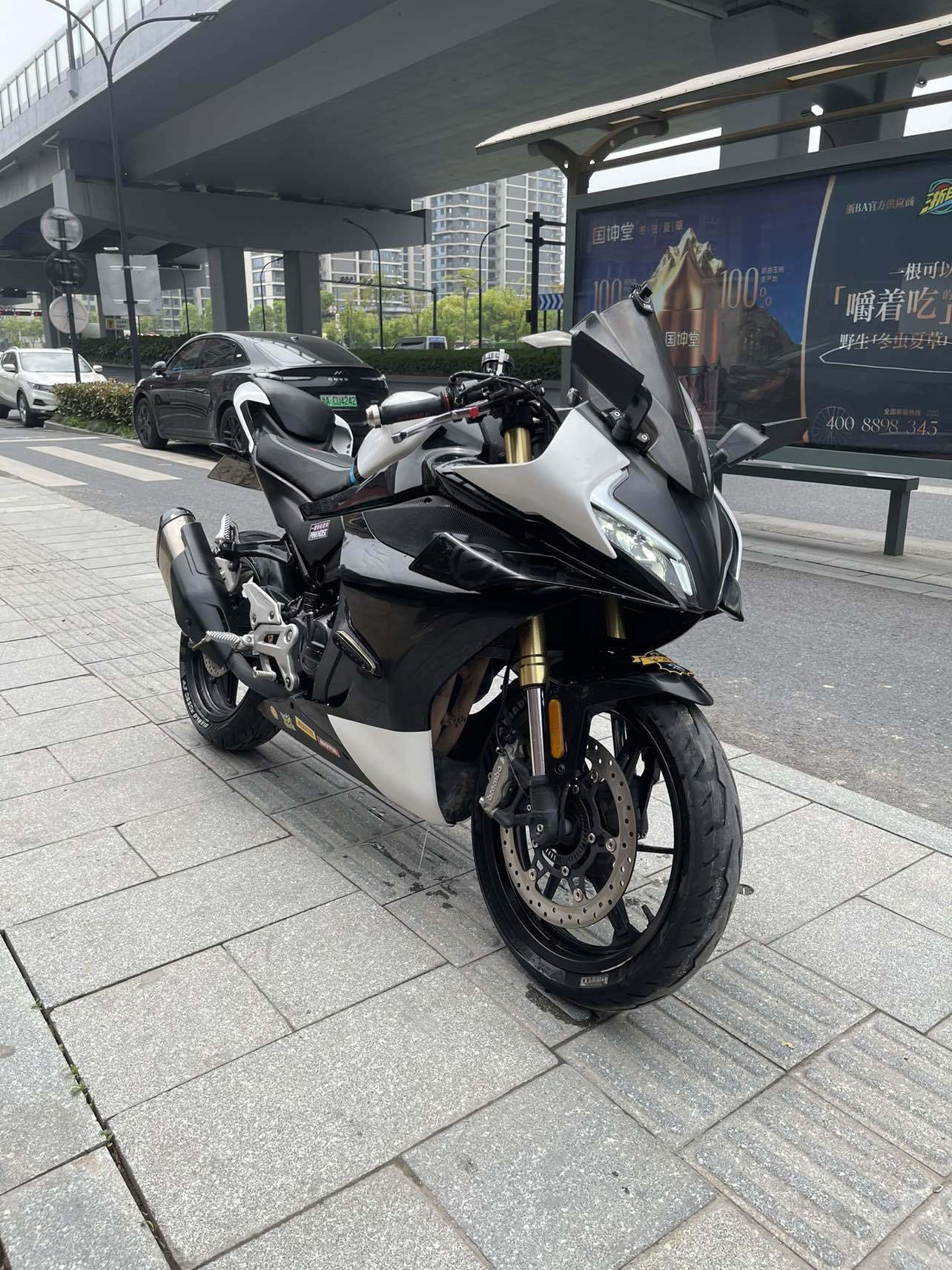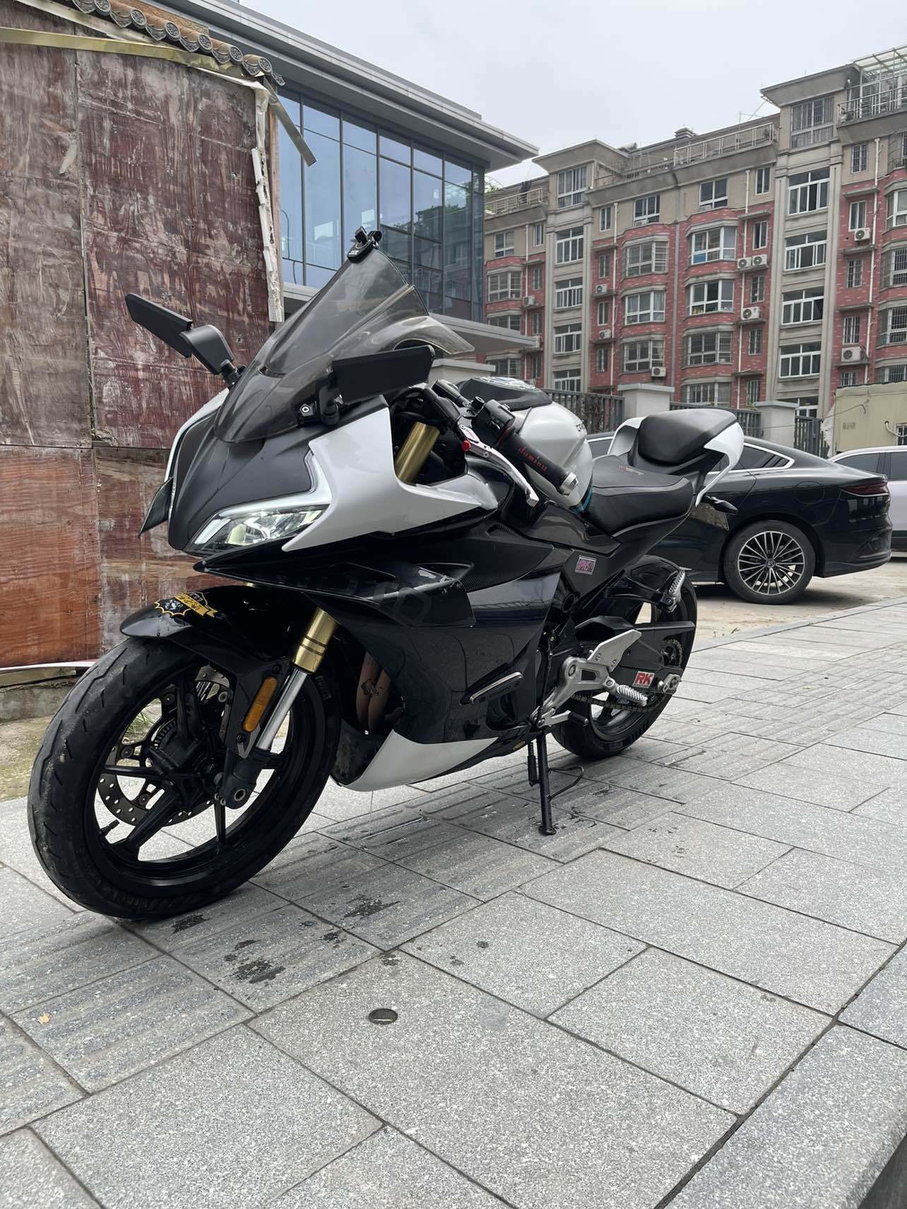 最新拿下23年春风450sr,过户二次安全行驶一万来公里,改装了定风翼后视镜,竞技风挡,多米诺手把,多米诺大拧油!原车贴了膜未备案版画被我撕掉了!
