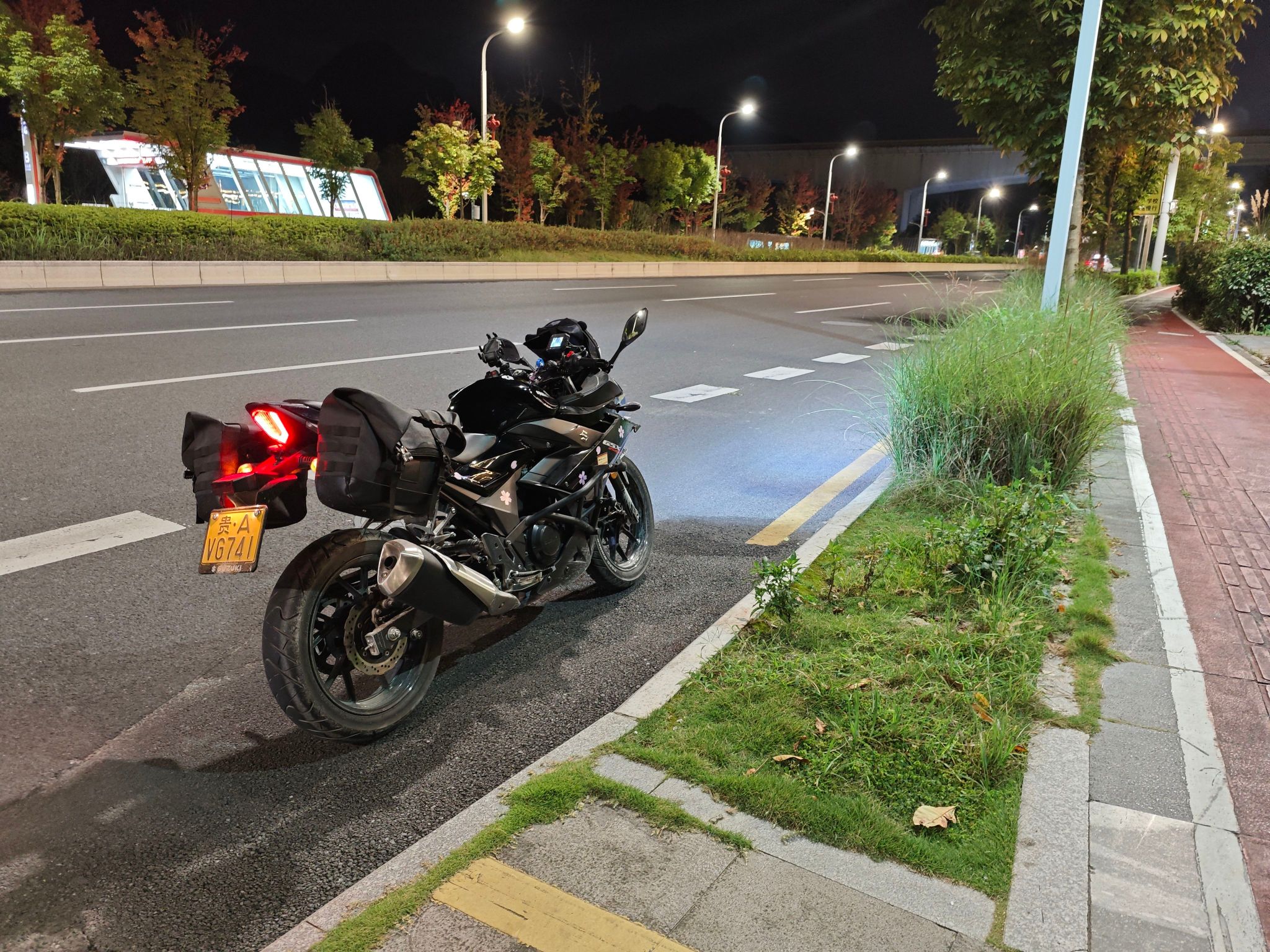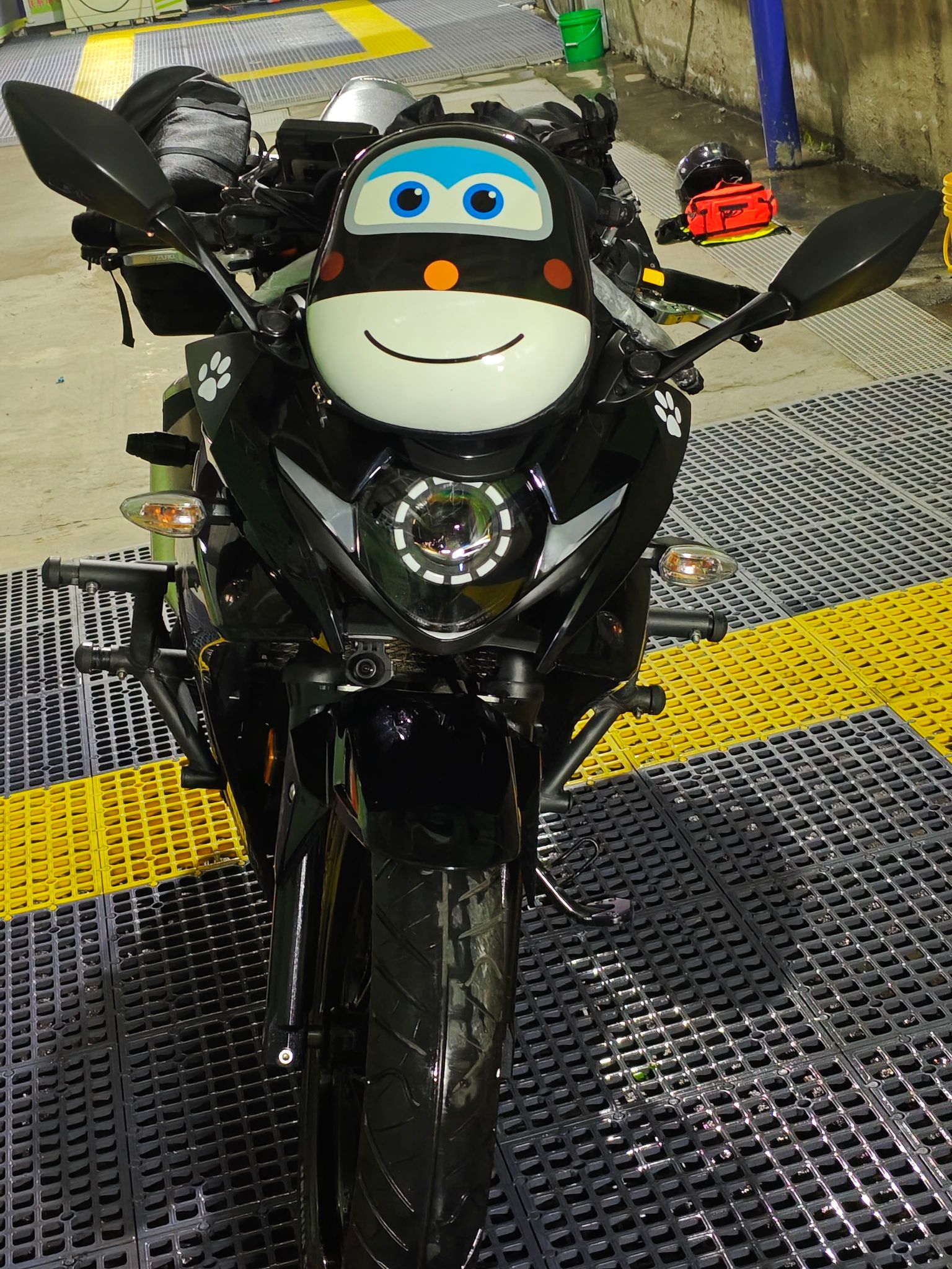 加装护杠、新换一个月的摩托佬65wLED天使眼透镜大灯(带启动自检和App调色)、HFK602行车记录仪,黑化风挡,五匹双口快充,铂雷科刹车片也是才换没多久