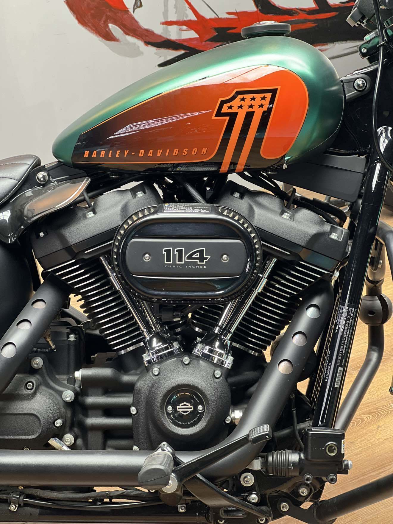 24年哈雷街霸114 实表5083公里,全车绿色改色膜(已备案),加装护杠,边包,改装眼镜蛇排气,羊角把。车况精品,看车必中!接受二手置换!