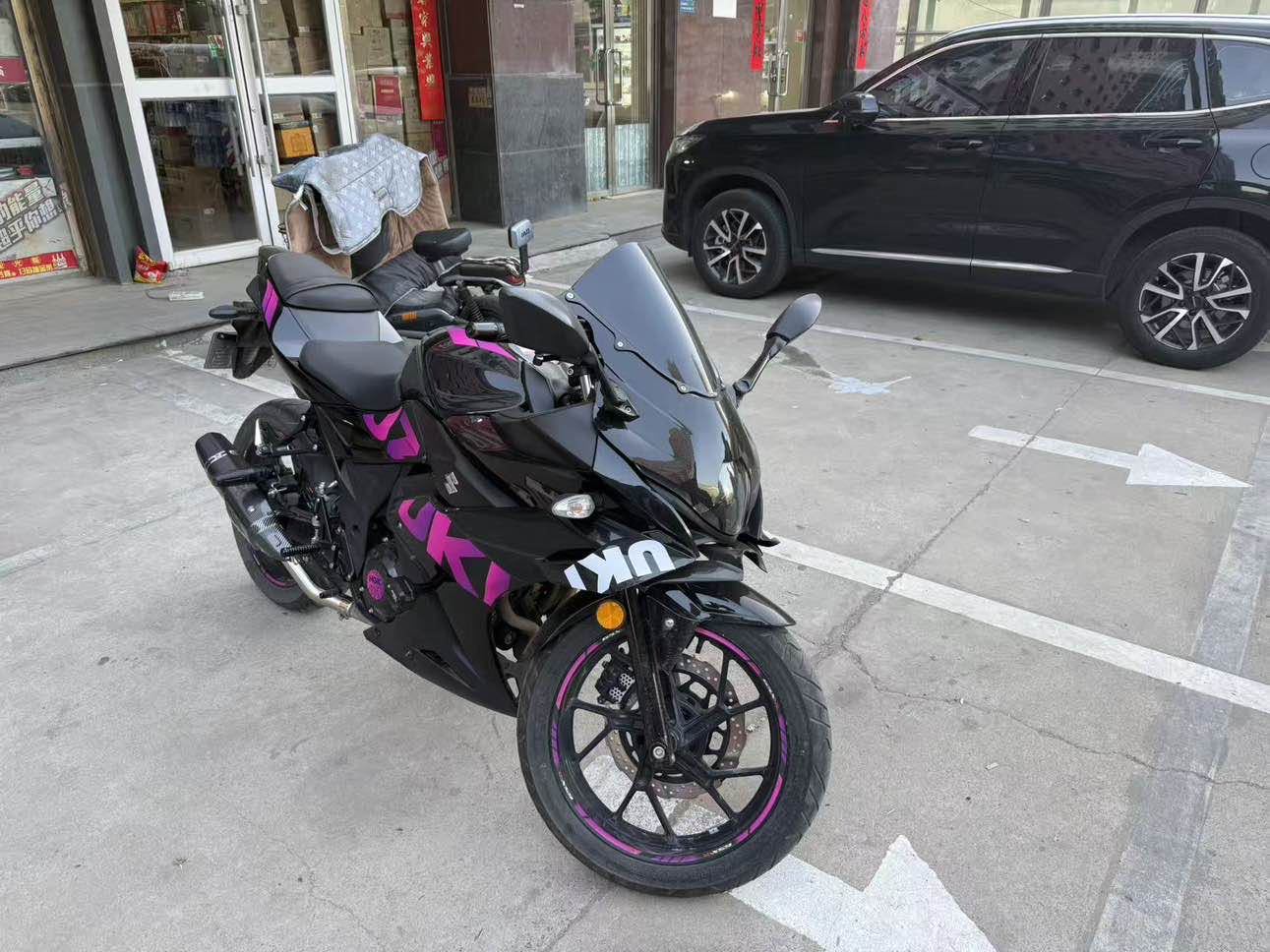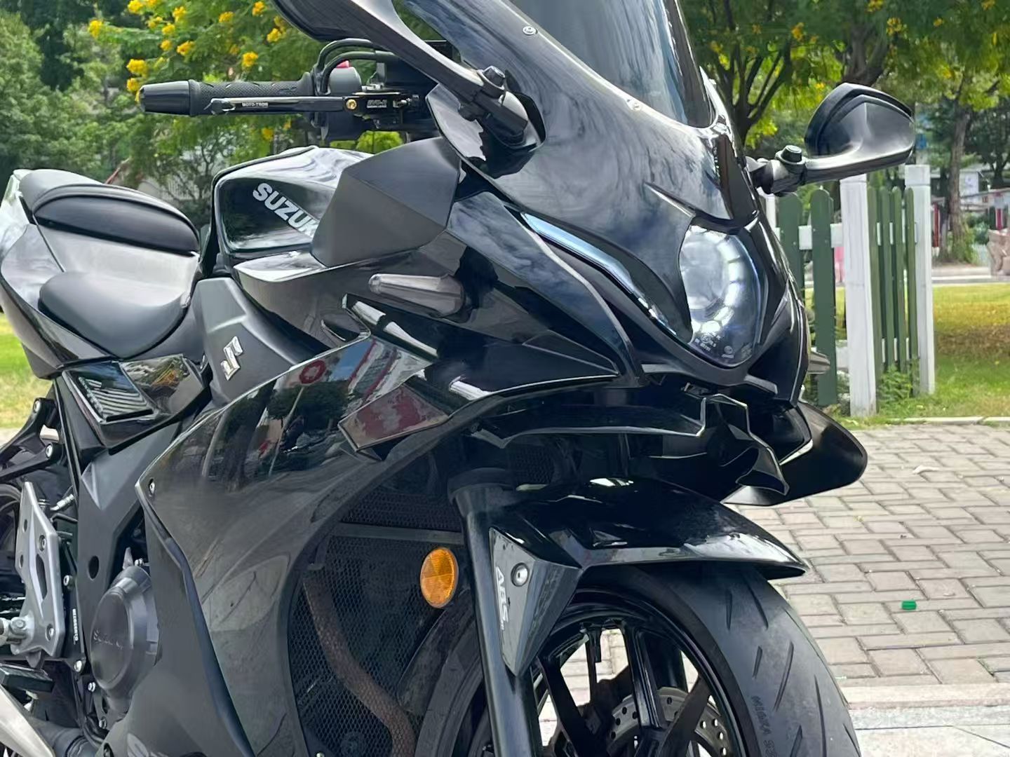 品牌:豪爵铃木 车型:铃木gsx250 年份:2023年上牌 里程:9000 M K 手续:全国提档过户 简介: 改装铃木大r前脸,透镜大灯,大牛后视镜,滑动离合,moto-tron省力离合,moto-tron刹车拉杠,前17齿小飞,后46尺大牙盘,黑金链条,前后正新s3半热熔街道胎,油箱护罩,流水转向灯等,车况精品,支持分期付款购买,喜欢联系!