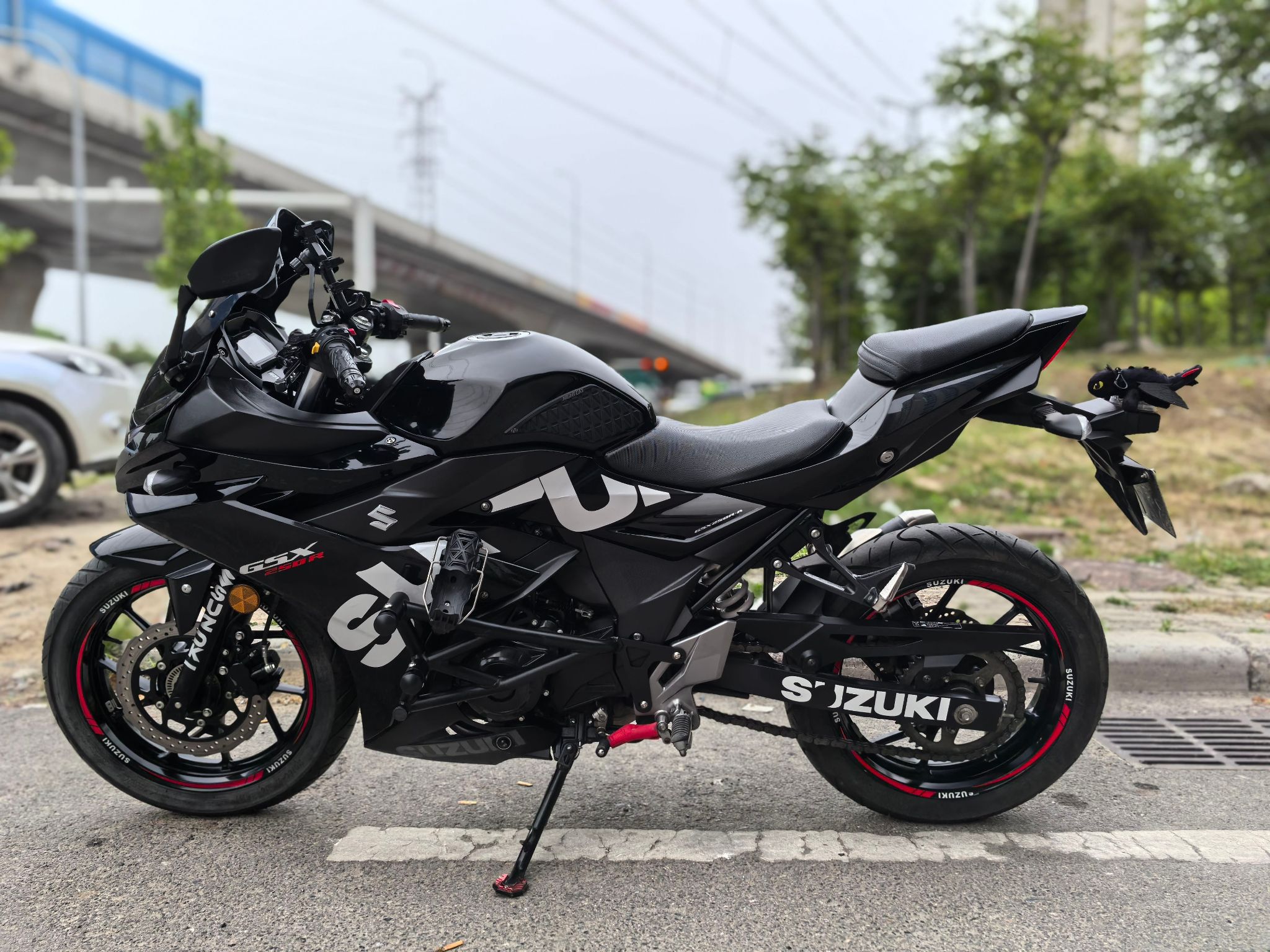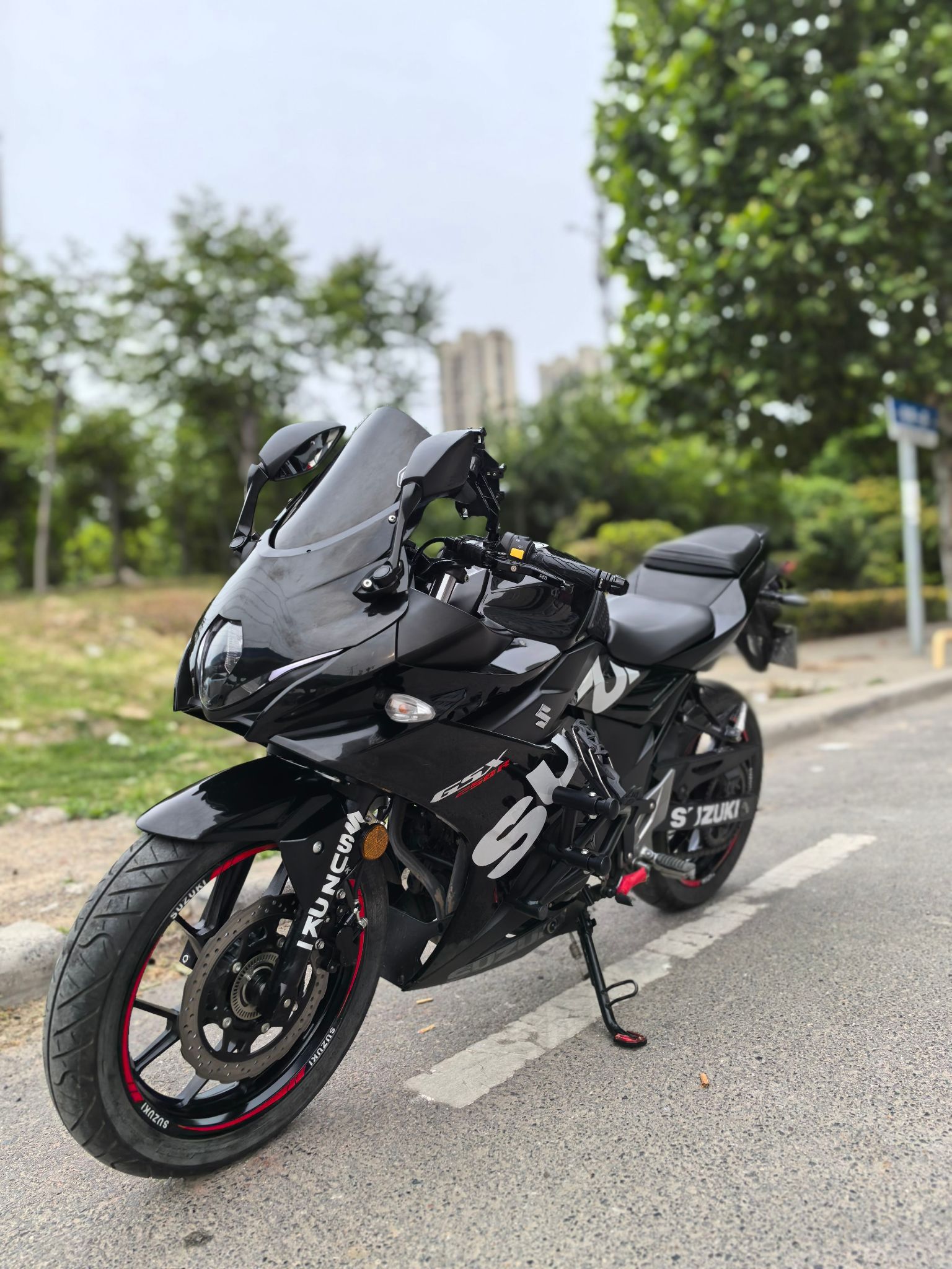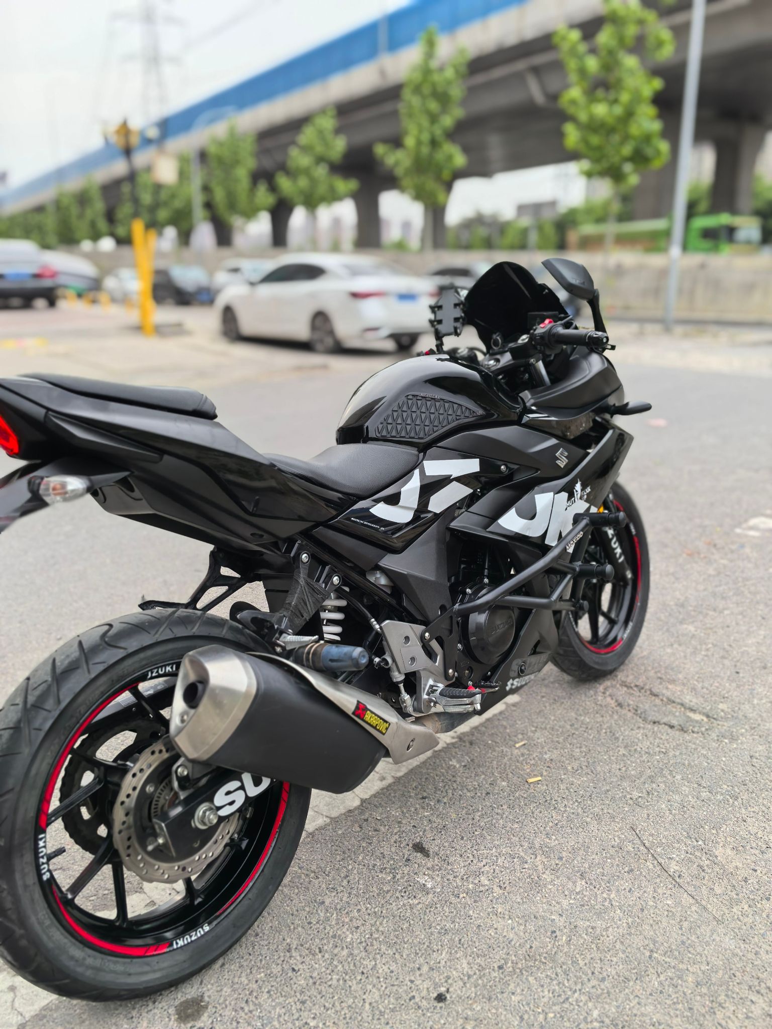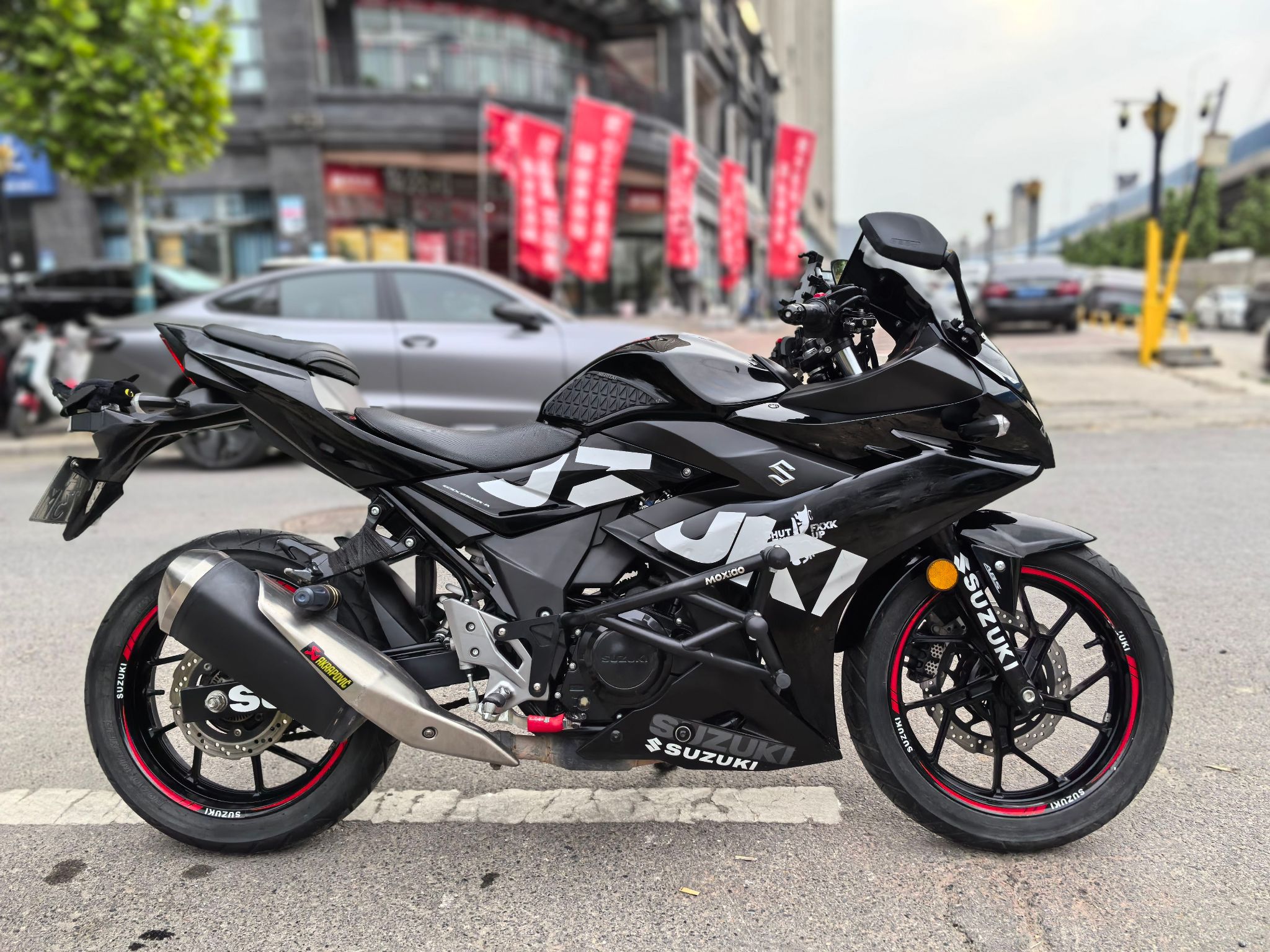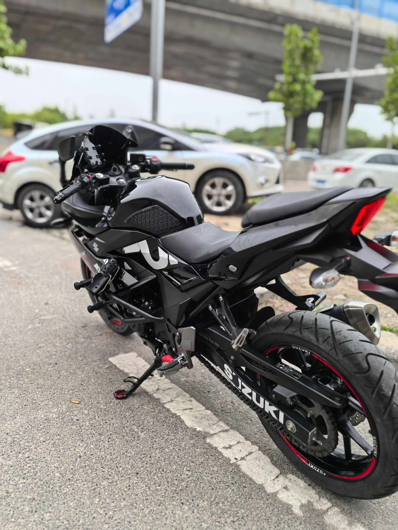 21年铃木gsx250,安全行驶一万三千公里,加装大r头罩,斯当克斯护杠,led灯,水杯支架,铝合金堵头,折叠牛角,手机支架,熏黑风挡,手续齐全,随时过户!