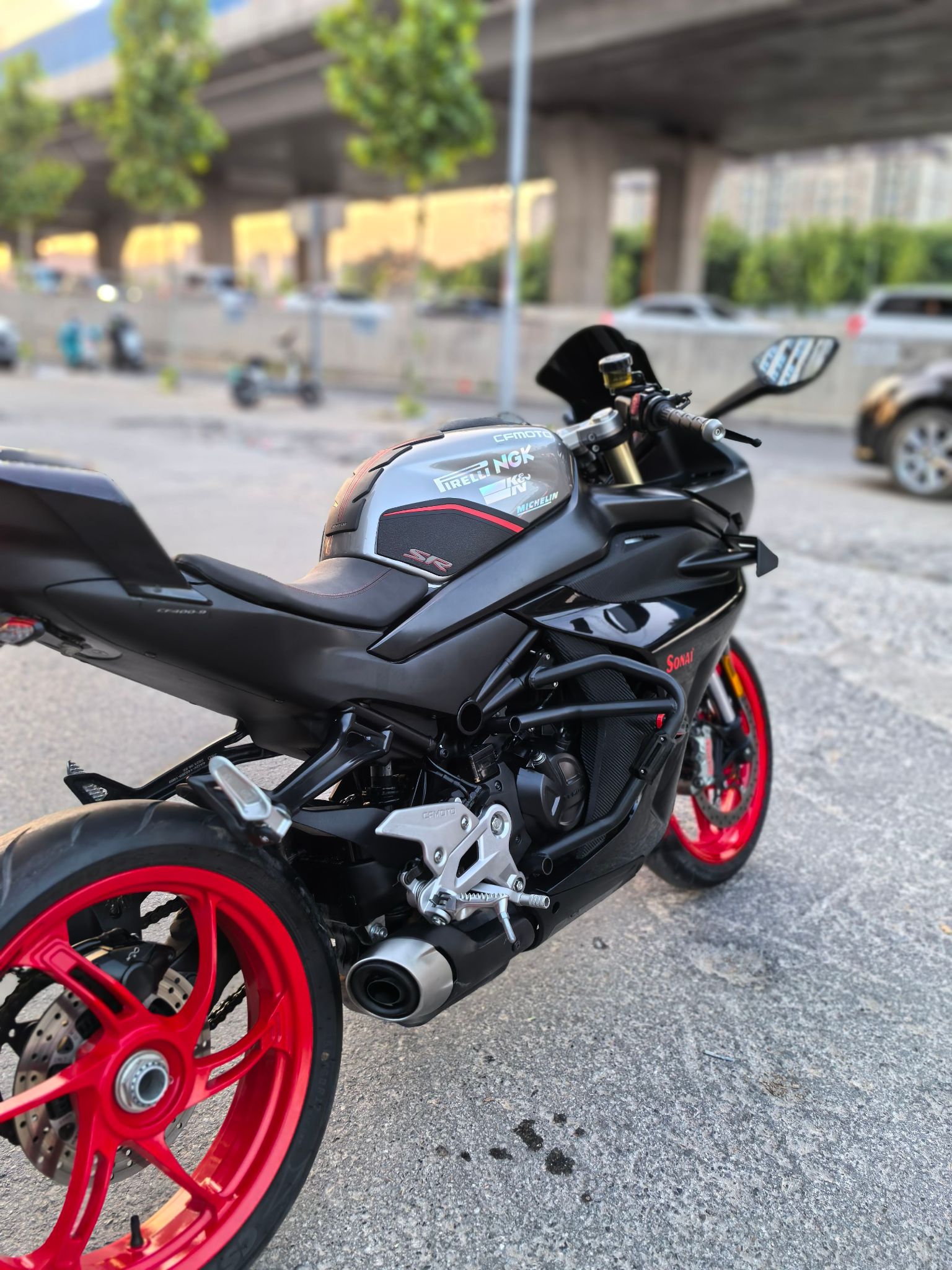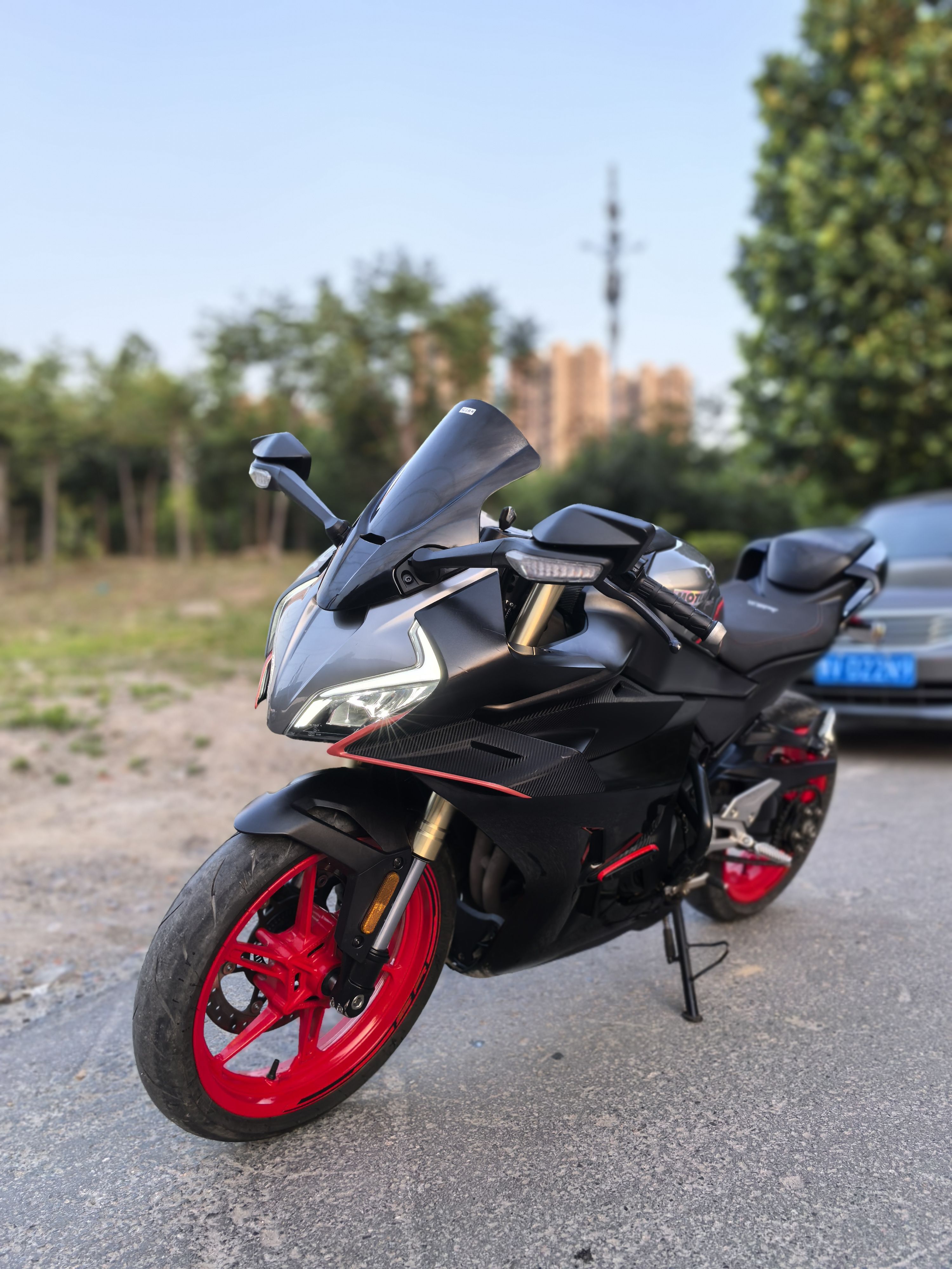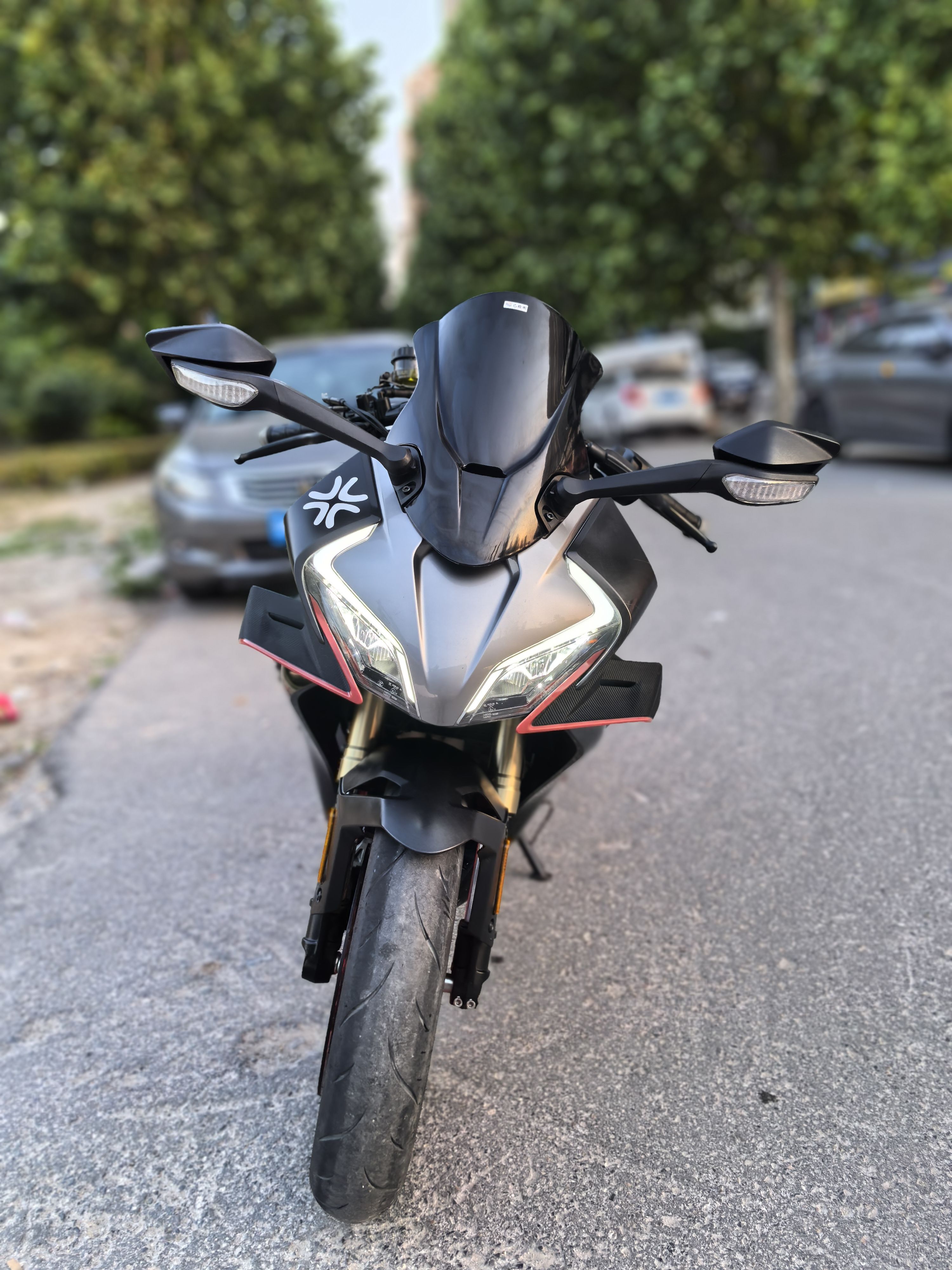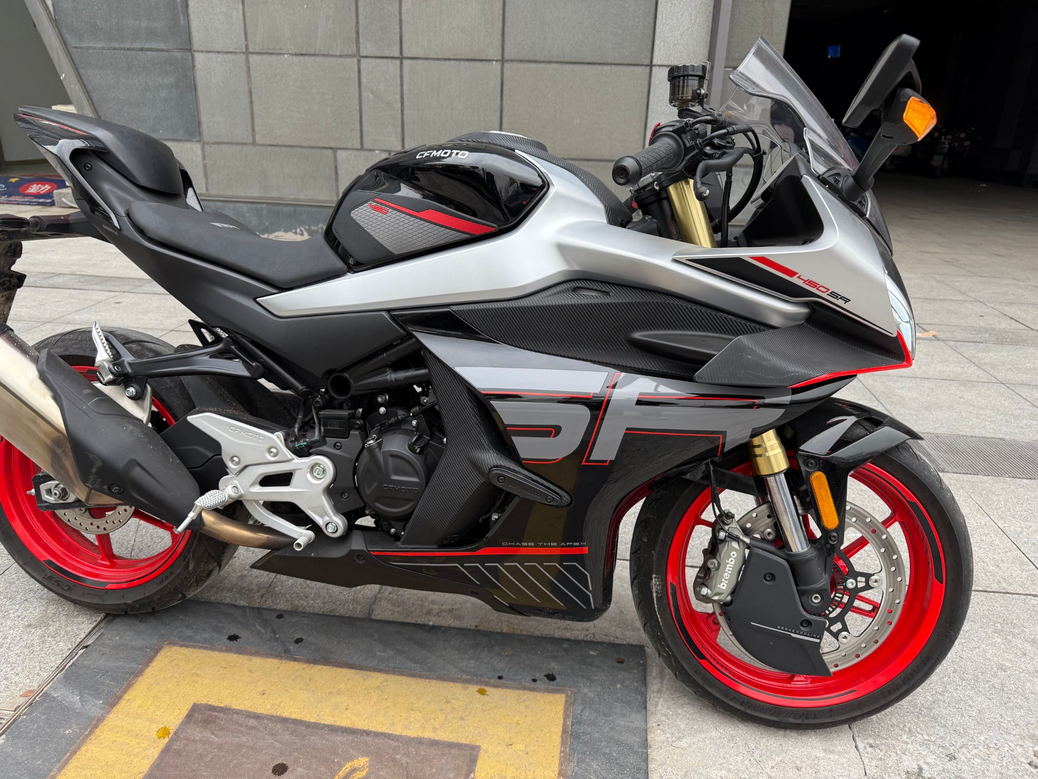 23年450srs,带前后abs和tcs,单摇臂,安全行驶一万四千公里,加装熏黑风挡,护杠,手机支架,短尾,手续齐全,随时过户!