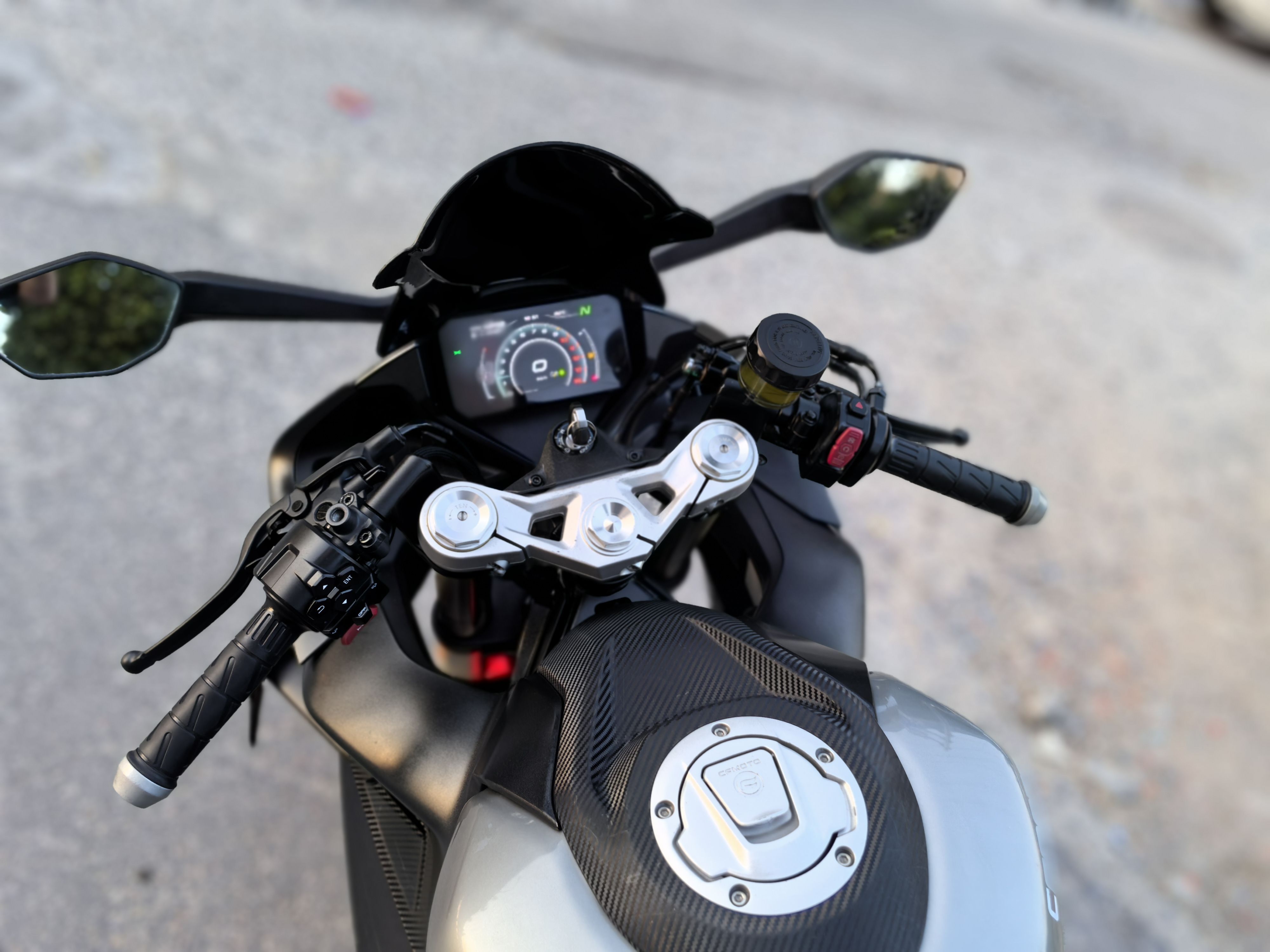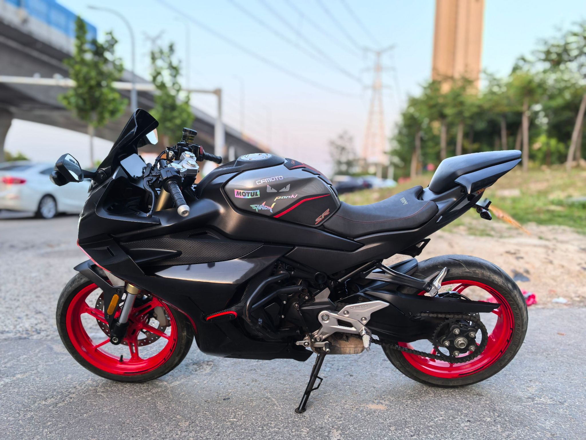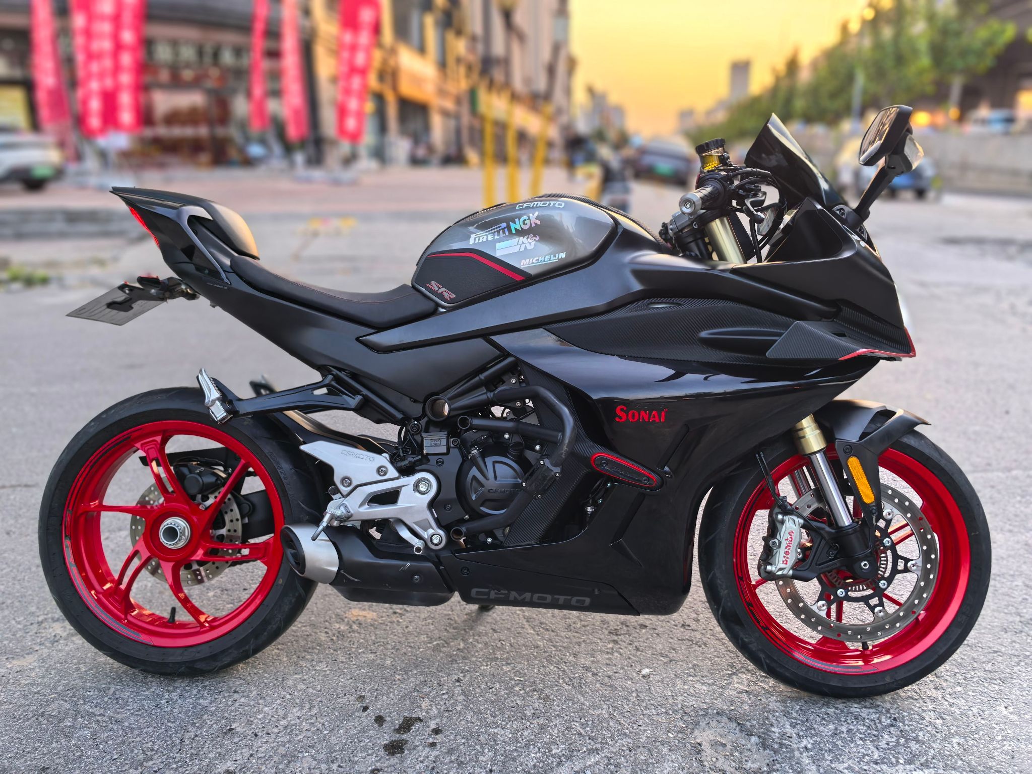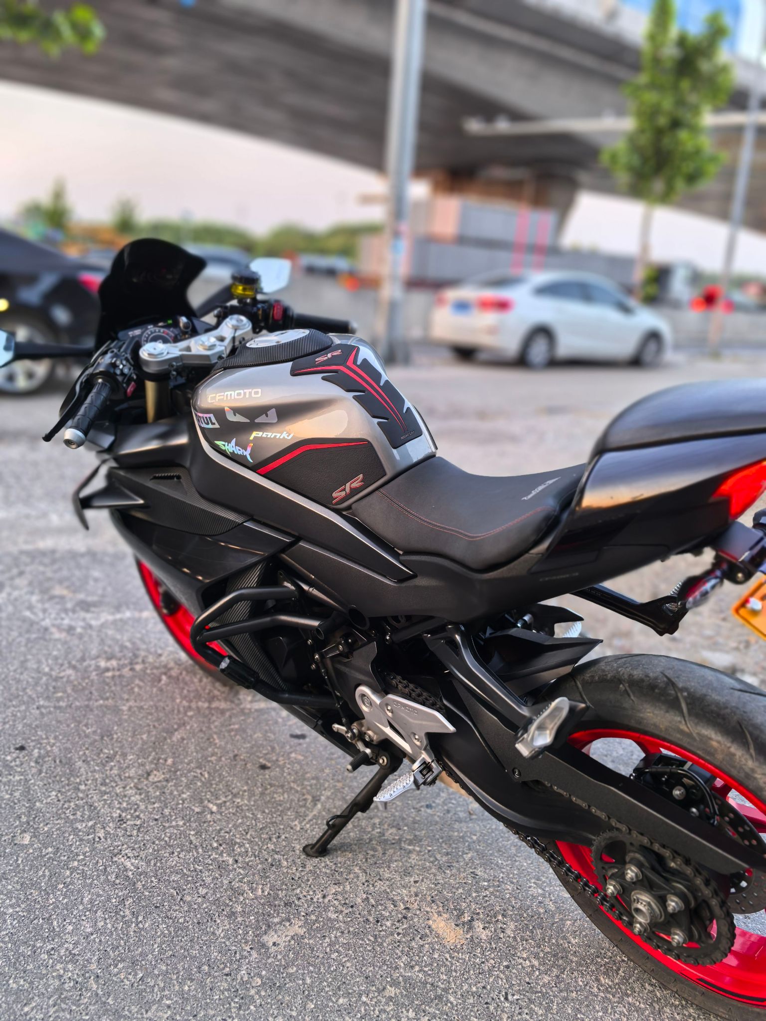 23年450srs,带前后abs和tcs,单摇臂,安全行驶一万四千公里,加装熏黑风挡,护杠,手机支架,短尾,手续齐全,随时过户!