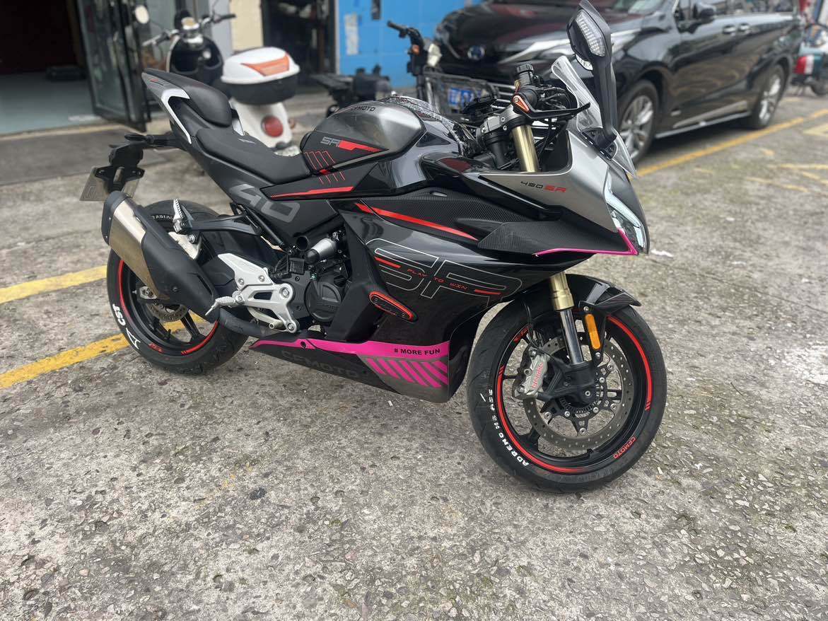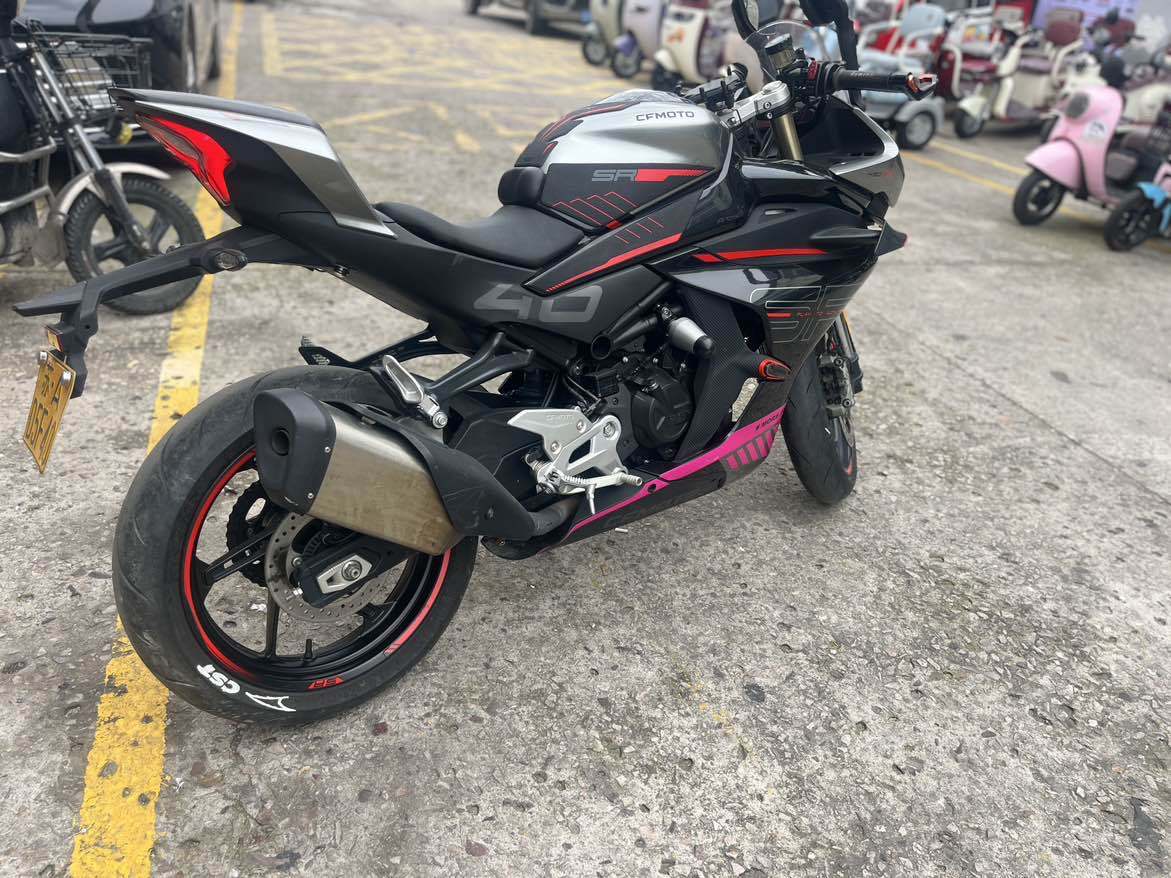 450SR,黑色仿赛,23年上牌,实表3789年,手续齐全,支持过户。动力足,骑着顺手,发动机状态一直很好,没摔没修,车况不错,外观成色还可以,有正常使用痕迹,保险正常,车架没问题,发动机没拆修,骑着放心。