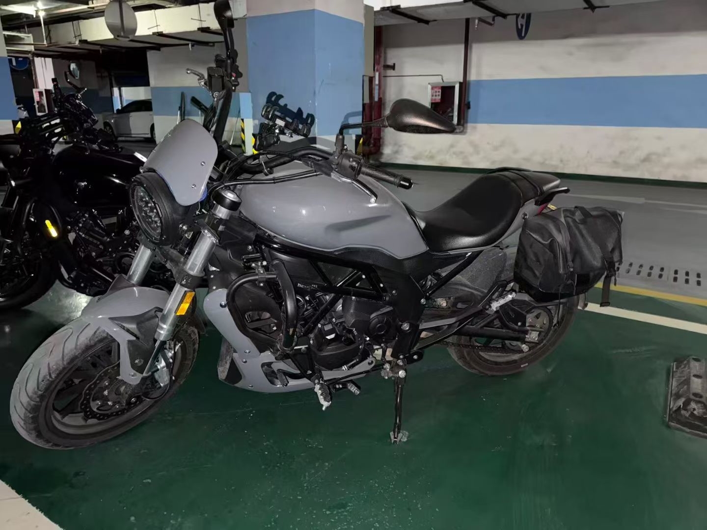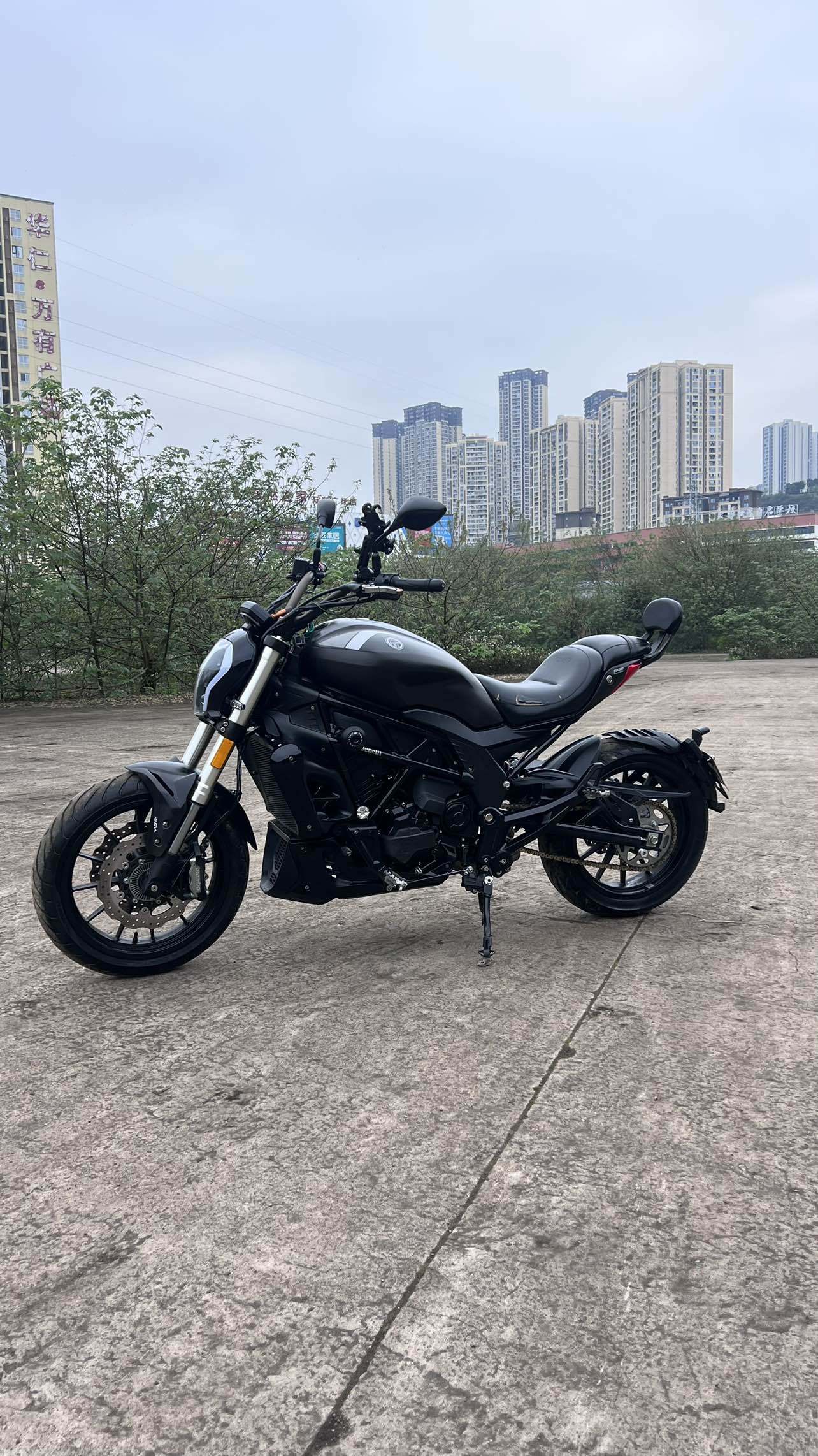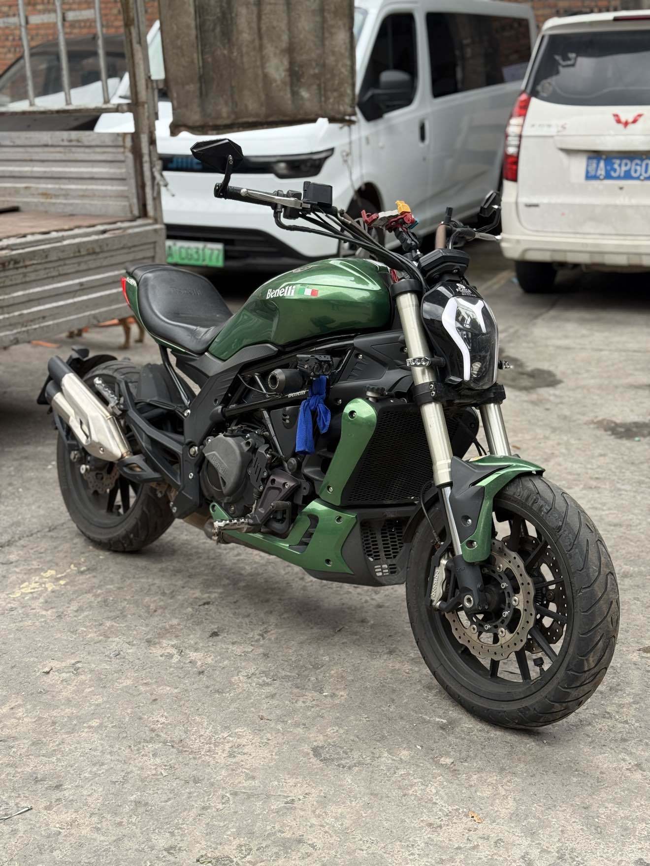 因换车,出自用摩托车,贝纳利502C,21年8月上牌,改装复古圆形大灯(原车灯在),加装边包,手机支架,水杯架。贴水泥灰全车膜(可备案),安全行驶一万公里