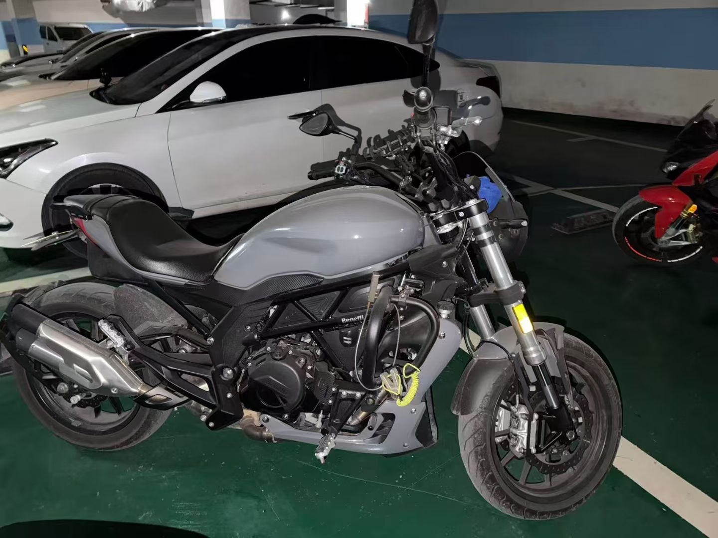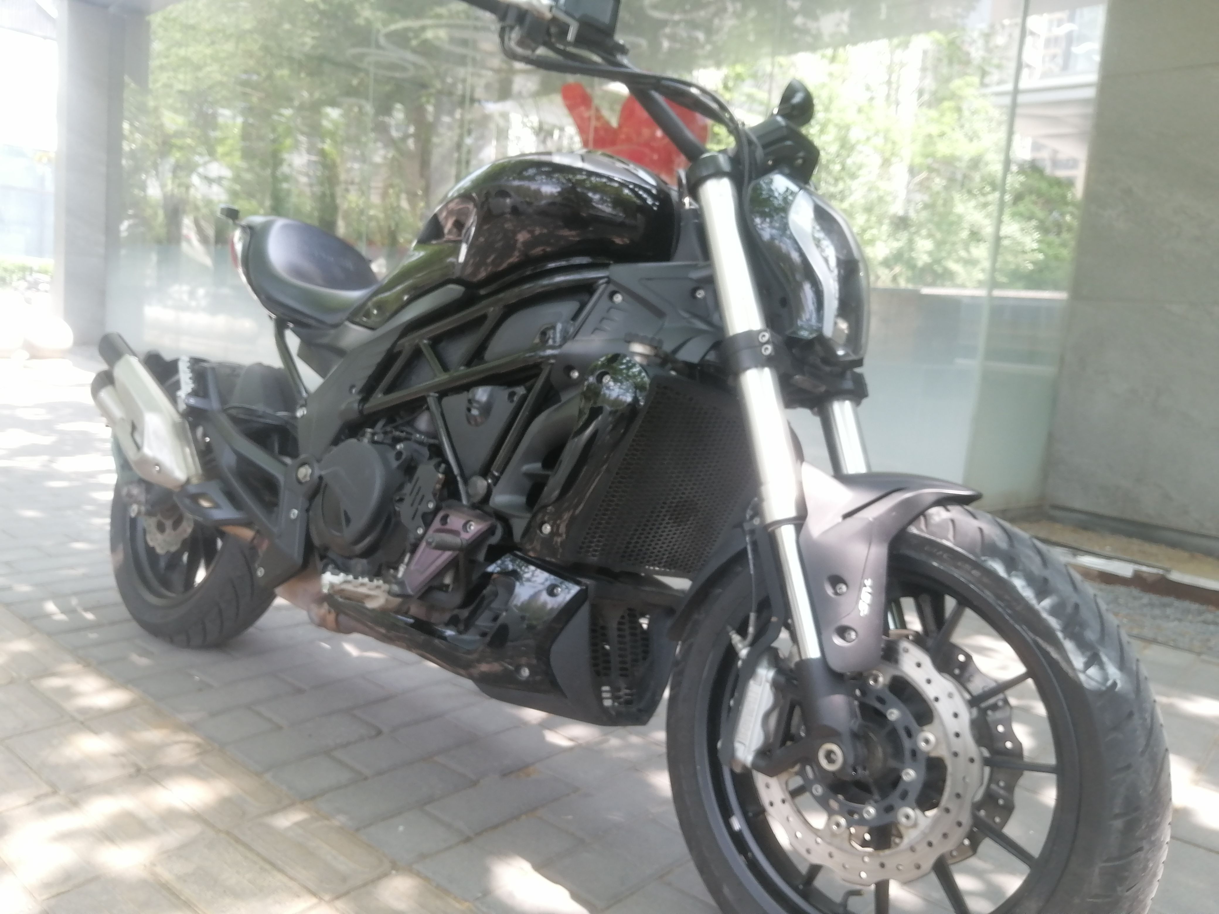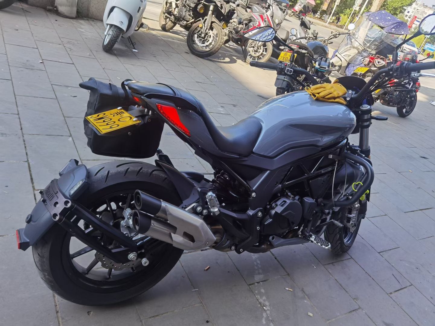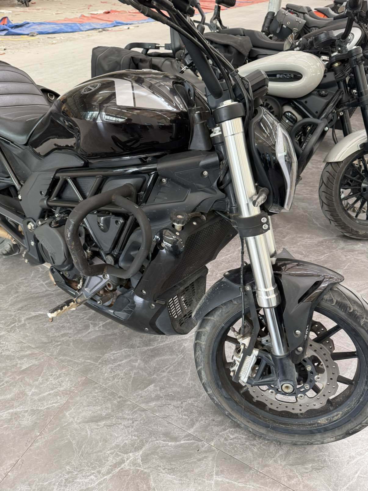 因换车,出自用摩托车,贝纳利502C,21年8月上牌,改装复古圆形大灯(原车灯在),加装边包,手机支架,水杯架。贴水泥灰全车膜(可备案),安全行驶一万公里